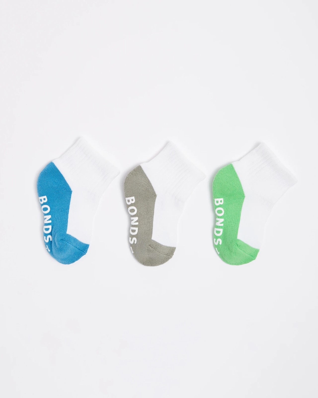 Discover the ultimate comfort for your little one's feet with our Bonds Baby Cushioned Quarter Crew Socks. These delightful socks, made from a cotton nylon blend, provide cushioned support, making them perfect for all-day wear. Available in a variety of colours, each pair features Bonds grip soles for extra security during your baby's adventures. Slip these on and watch your baby step out in style and comfort. Shop now and give those tiny toes the pampering they deserve!