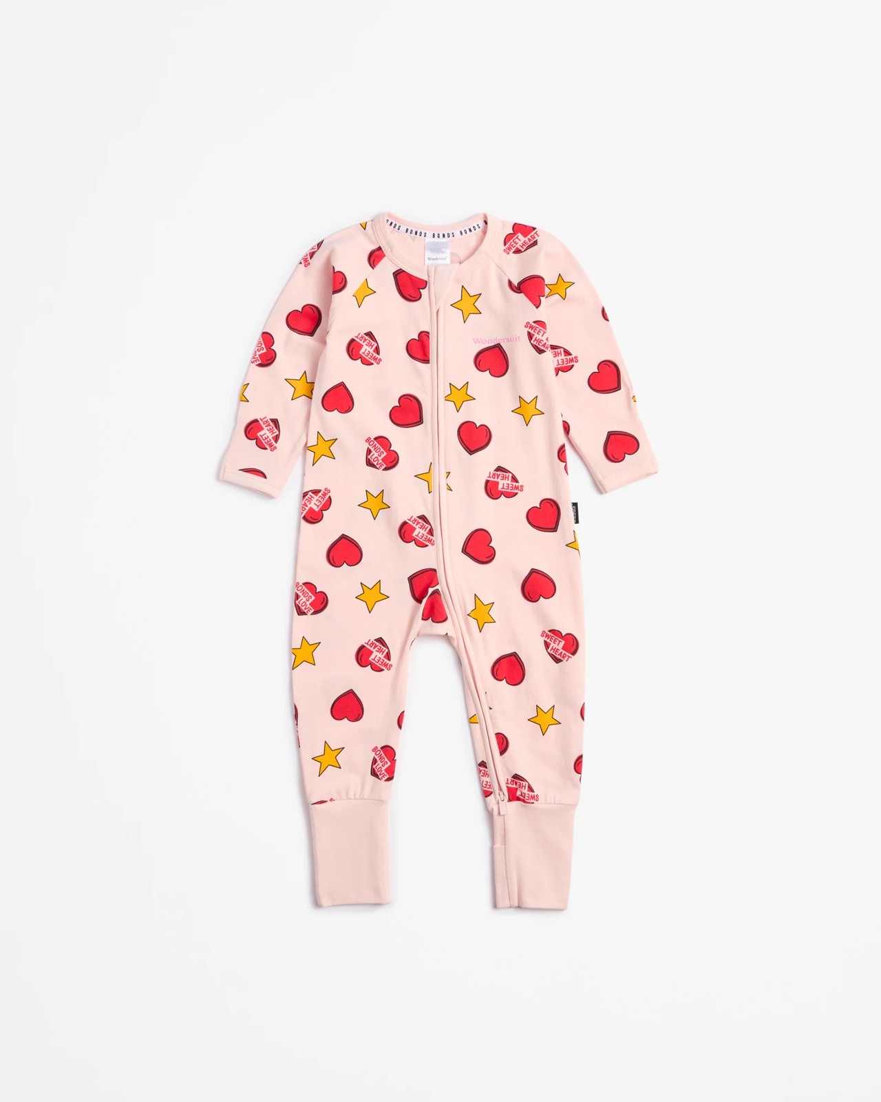 Treat your baby to the ultimate in comfort and style with the Bonds Baby Print Zip Wondersuit Coverall in Sweet Lovin. Made from soft, stretchy cotton, this adorable coverall boasts delightful prints and a practical two-way zip, making nappy changes quick and easy. The cosy and flexible fabric ensures your little one can move freely throughout the day and night. Safety and comfort are prioritised with a protective zip cover and fold-over cuffs on the feet for added warmth. For newborns, the fold-over mittens help prevent scratching, making this coverall perfect for tiny tots. Only the Seashell Red Coverall is included, with other options available separately. Make your baby's everyday wardrobe a bit more special with this essential item.