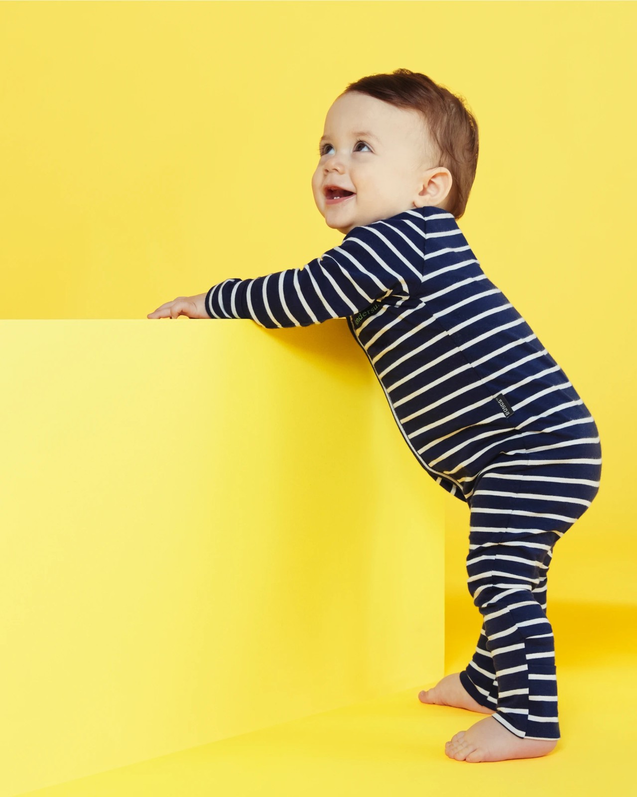 Bonds Baby Stripe Zip Wondersuit Coverall - Navy Blue/White Stripe
