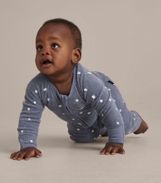 The Bonds Baby Zip Poodlette Coverall is crafted in soft cotton rich terry fabric and with a 2-way zip! It has a protective zip cover so baby's skin stays safe and fold over cuffs on feet for extra warmth and comfort.Model wears size 0.