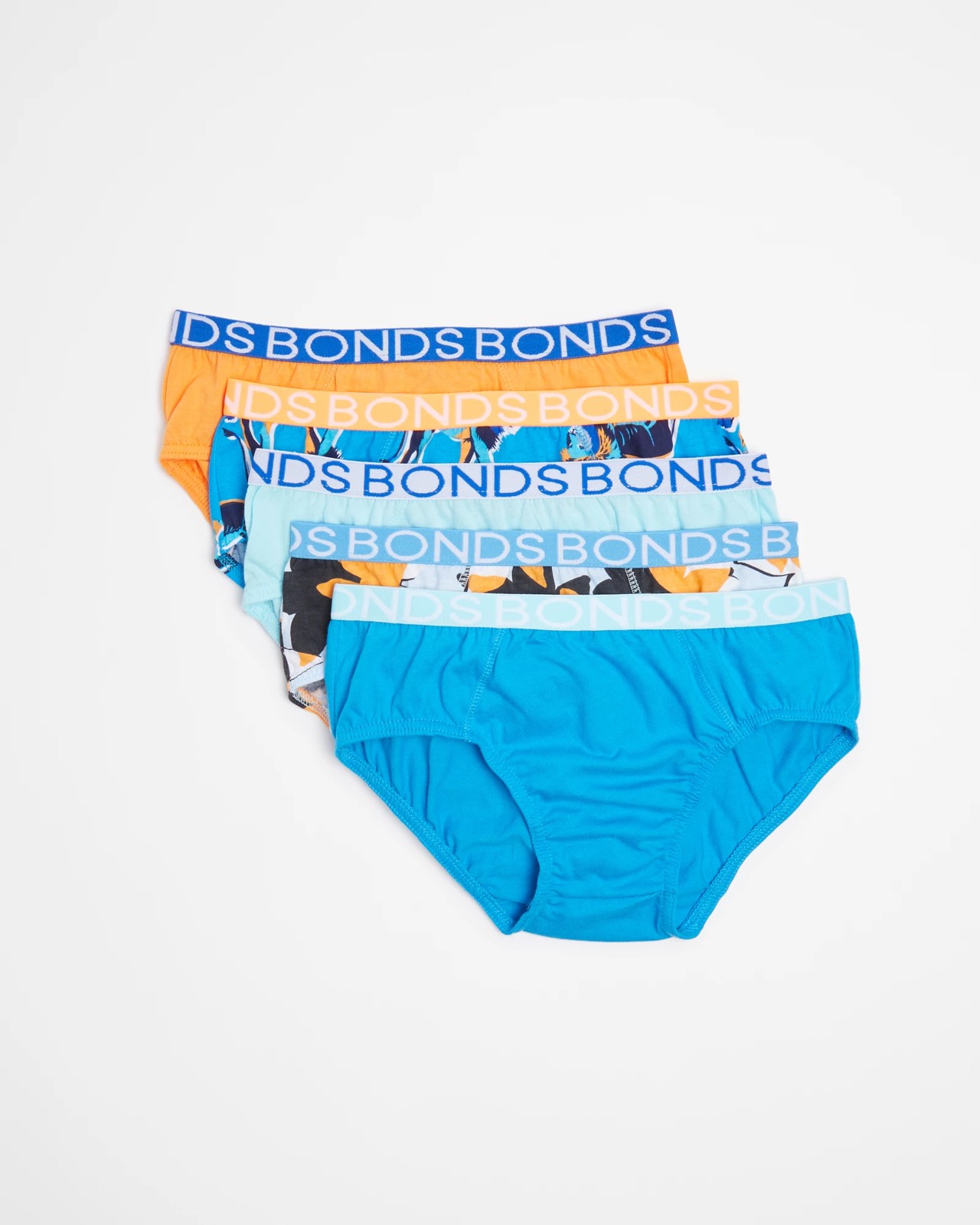 Stock up on quality basics for boys with this 5 Pack of Bonds Boys Briefs. Crafted from a cotton-rich fabric, these regular fit briefs feature the iconic Bonds elastic waistband for added comfort. With a variety of colours and jungle prints to choose from, these briefs are perfect for keeping him comfortable throughout the day.