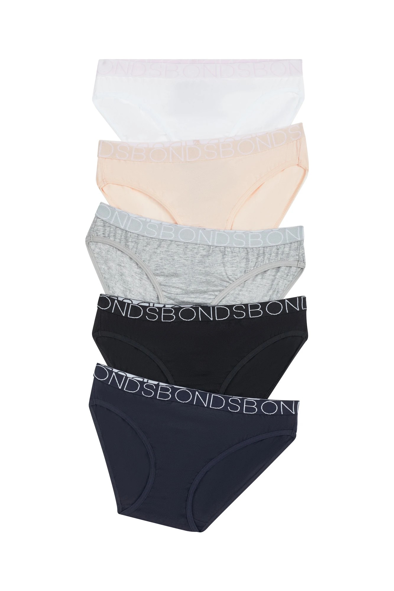 Bonds Girls 5 Pack Bikini Briefs - UWCE5A_A36 Nude Black Grey White