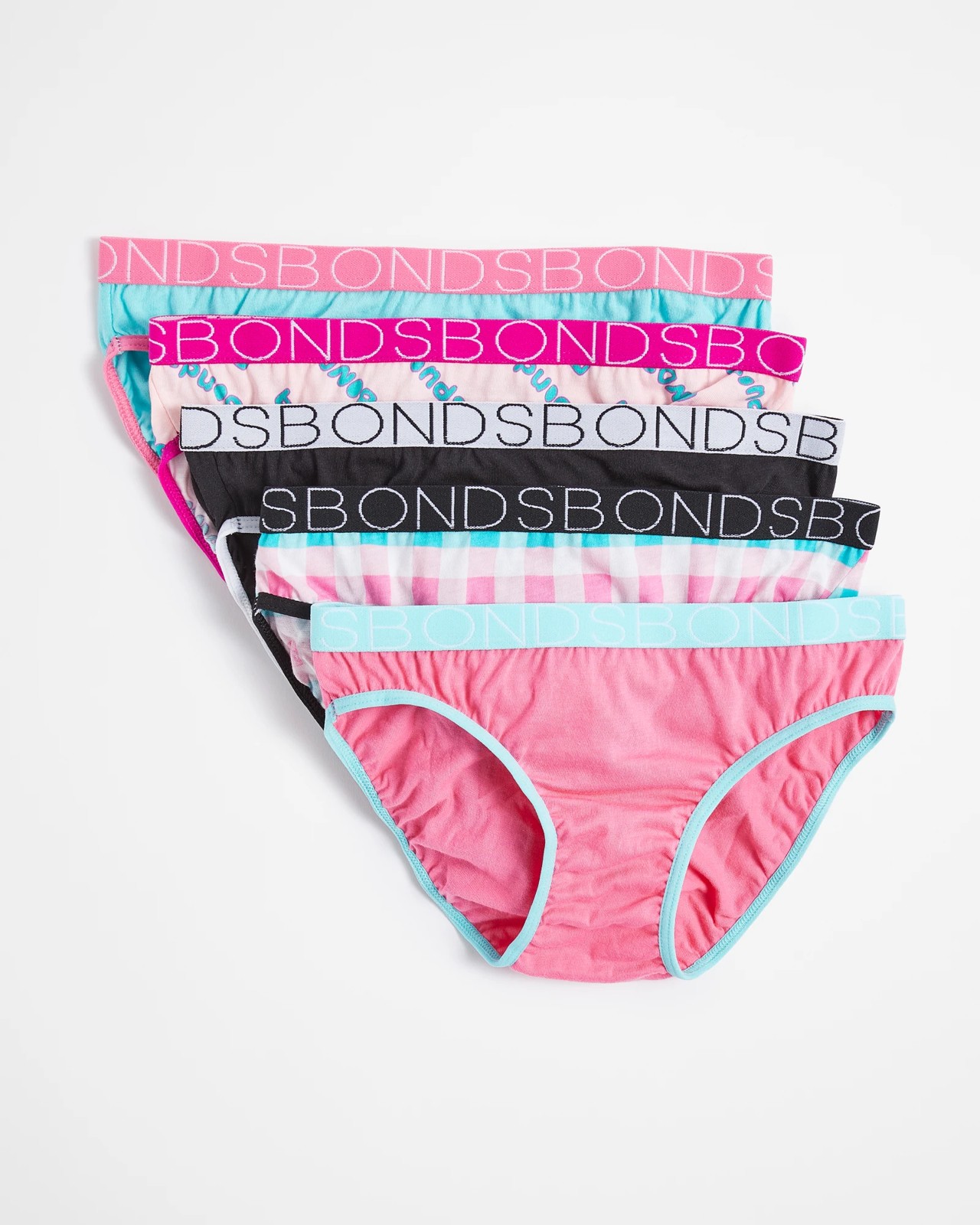 Introducing the perfect addition to any girl's wardrobe - Bonds Girls 5 Pack Bikini Briefs! Crafted from a soft and breathable cotton-rich blend, these briefs offer superior comfort all day long. The regular fit and Bonds elastic waistbands ensure a comfortable fit, while the variety of colours and prints provide extra fun and style. Get ready for whatever life throws at her with Bonds Girls' 5 Pack Bikini Briefs!
