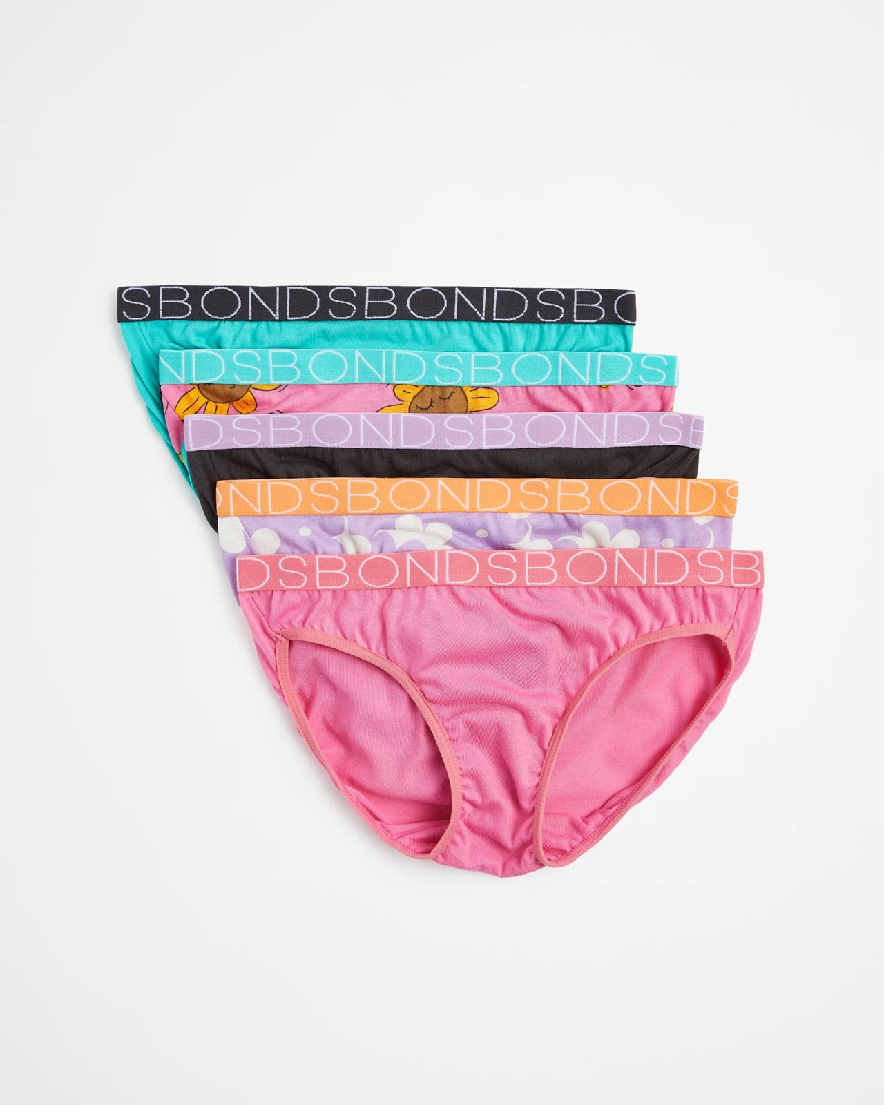 Discover the delightful Bonds Girls Bikini Briefs 5 Pack, the perfect addition to any girl's underwear collection. Made from premium quality cotton, these bikini briefs deliver unrivalled comfort and breathability that lasts all day. The secure elastic waistband enables easy movement and ensures a snug fit. With a range of colourful prints and hues, these briefs inject a playful and stylish flair into your little one's wardrobe. Whether it's for everyday wear or special occasions, these bikini briefs are an ideal choice for every girl. Elevate her undergarment drawer with this exceptional 5-pack, granting her the assurance to conquer the day!