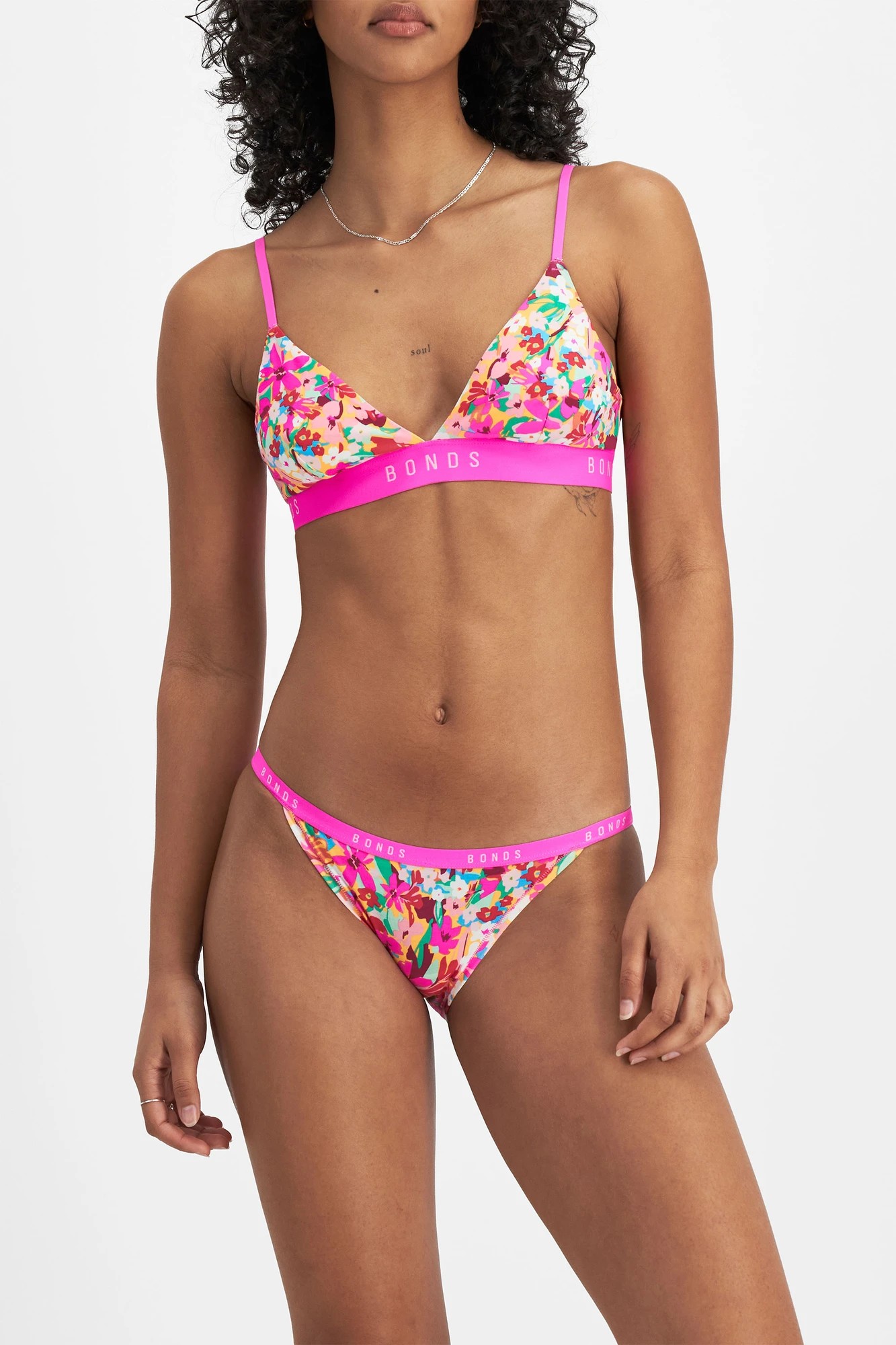 A cheeky take on a classic undie, the Bonds string bikini briefs is a classic shape with a modern twist. It has a low rise elastic waist with the signature Bonds logo but has high cut sides with a string opening. It is available in a range of colours and designs.