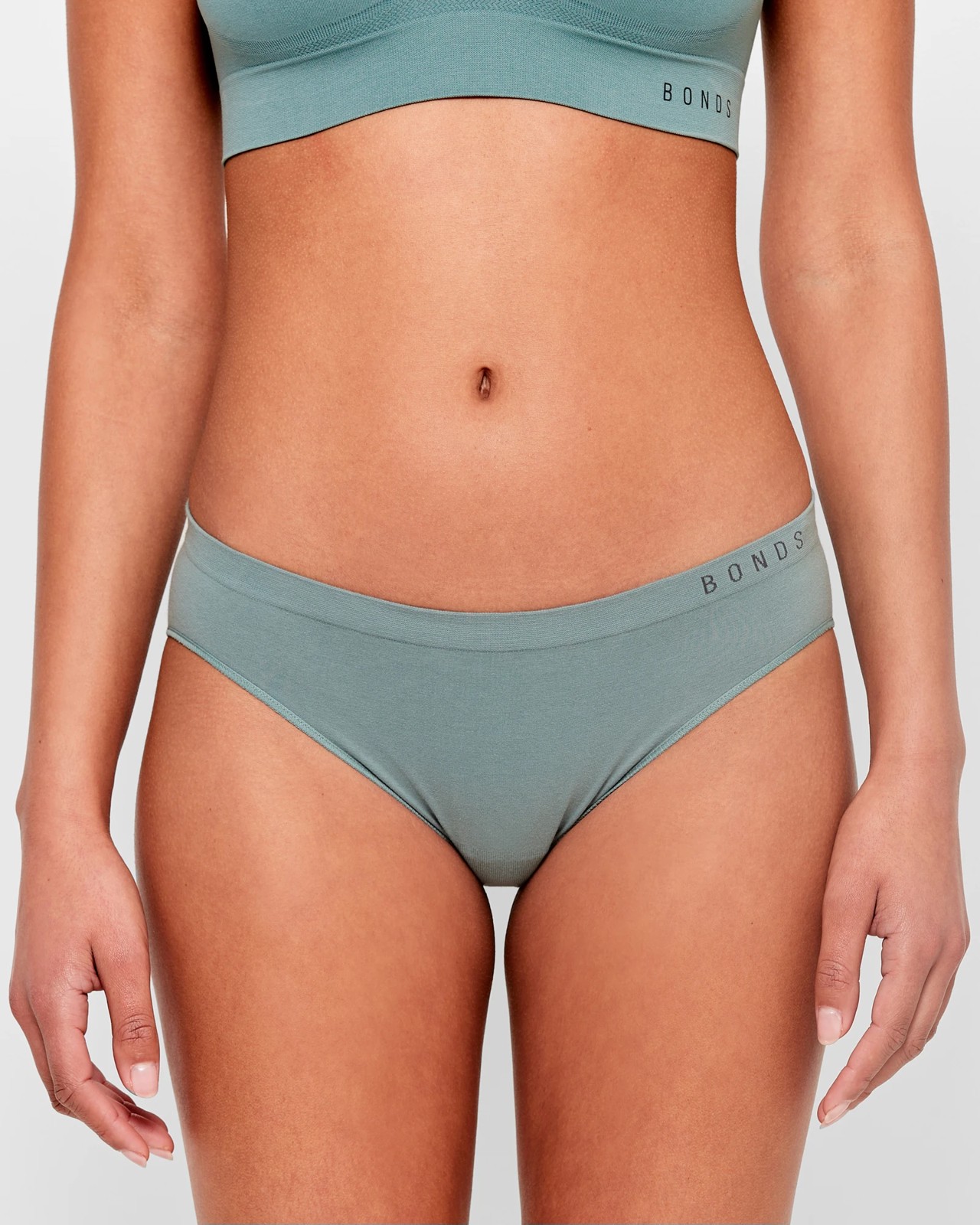 Make a statement with our Bonds Bikini Briefs! Made from a cotton/nylon blended fabrication, they provide a comfortable stretch and minimal seams for seamless and smooth coverage. Designed with an embossed Bonds branded waistband, elastic waistband for a secure fit, and high cut legs with no dig leg finish for maximum comfort. Add a touch of style and comfort to your wardrobe with our Bonds Bikini Briefs!