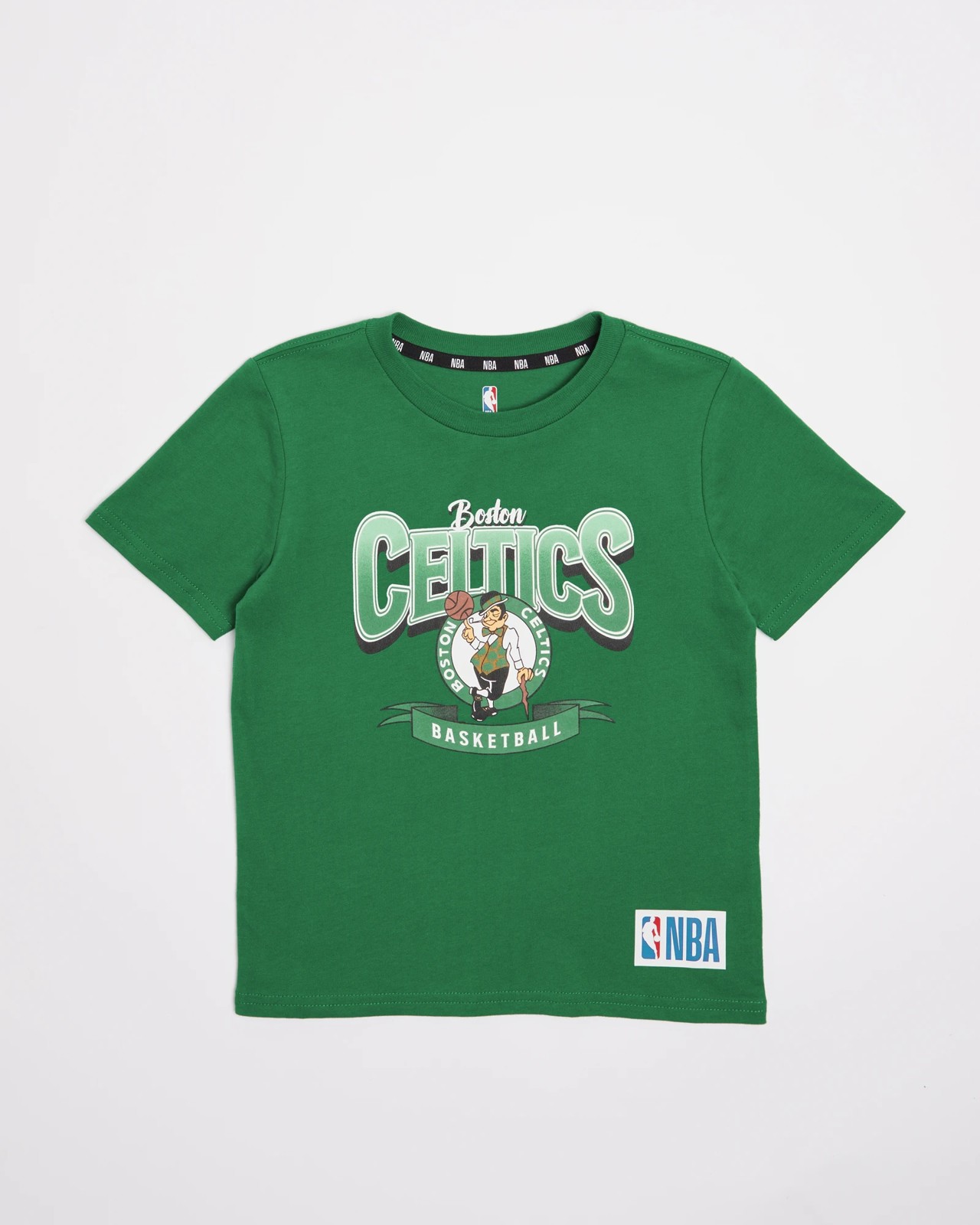 This stylish NBA T-shirt from the sports apparel experts at The Boston Celtics is perfect for any fan. Crafted from a cotton-rich blend, it features a regular fit and a ribbed crew neckline for added comfort. The bright green color is sure to stand out, while the large Boston Celtics print to the front adds an unmistakable touch of team pride. Completed with short sleeves and a straight hemline, this T-shirt will have him showing off his team spirit in style.