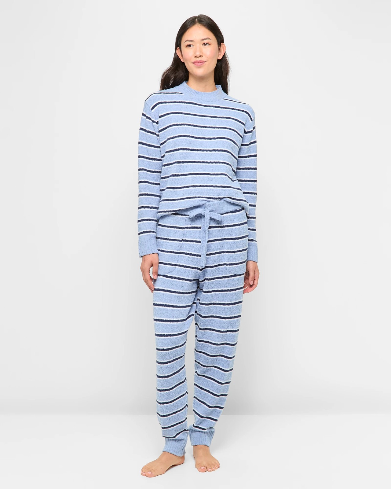 Elevate your bedtime comfort with our Boucle Sleep Jogger Pants, designed with relaxation in mind. These joggers are made from polyester fabric and feature a cosy boucle texture that is incredibly soft against your skin. The pattern adds a touch of sophistication, while the high-rise waist and thick elastic waistband offer a secure yet comfortable fit. Large exposed front pockets and a classic jogger design lend both style and practicality. Pair these joggers with our matching sleep top for a coordinated look. Experience comfort, all night long.