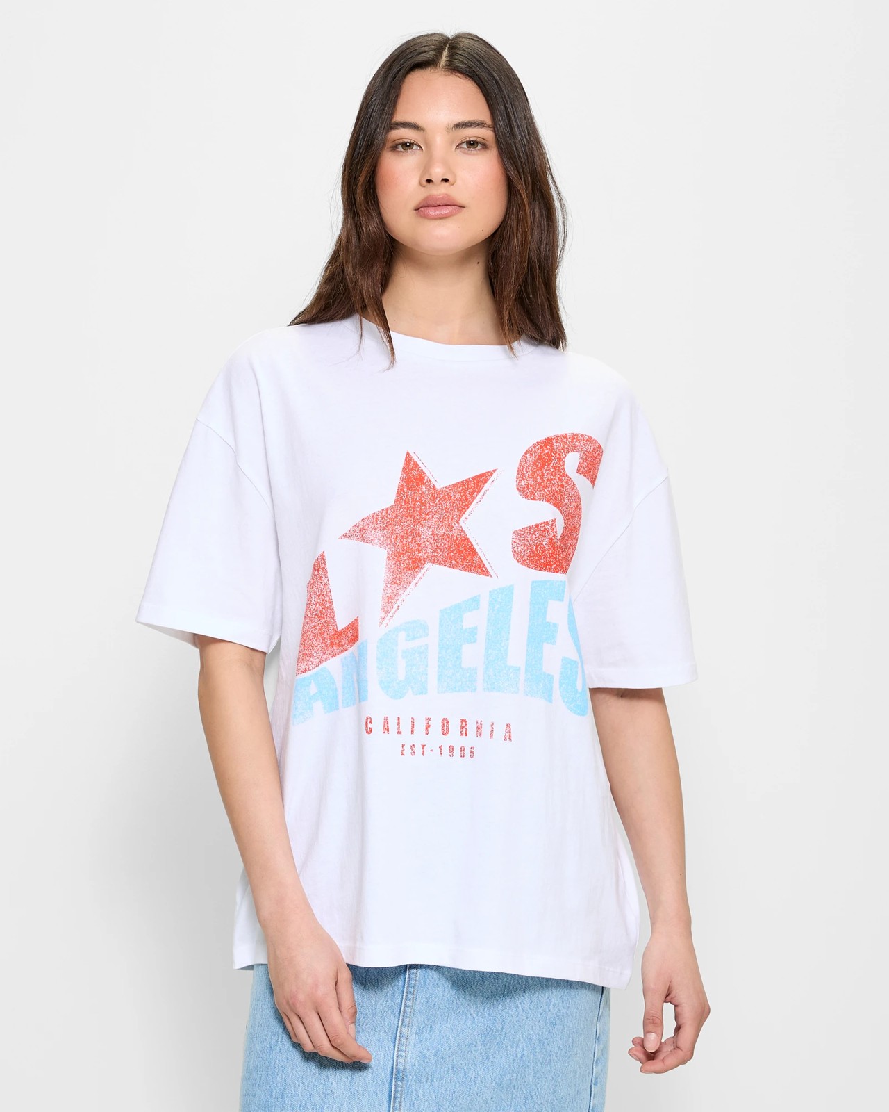 Bold chest print with wording LOS ANGELES