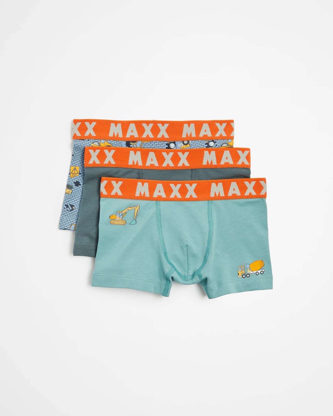 Revamp your little one's underwear collection with the Boys Construction Trunks 3 Pack from Maxx. These trunks are crafted from premium cotton with added stretch for all-day comfort. Each pack features a variety of vibrant colours and fun construction prints that will delight any youngster. The Maxx soft touch elastic waistband and double layer front pouch provide extra support, while the tag-free design ensures all-day comfort. Upgrade now for a boost in confidence and comfort!