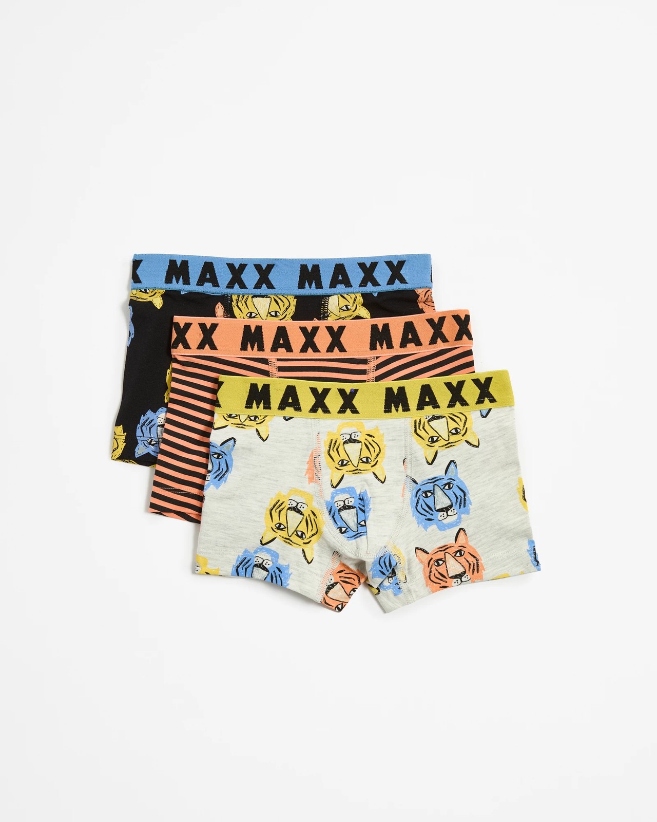 Discover the ultimate in comfort and style with our boys' 3 pack trunks. Made from soft, stretchy cotton, these trunks offer a regular fit that your young one will love. Featuring a variety of fun colours and prints, each pair includes our Elastic Maxx waistband and a double layer front pouch for added support. The tag-free design ensures all-day comfort. Perfect for everyday wear, these trunks are a must-have addition to any boy's wardrobe. Get them now and provide unmatched support and style!