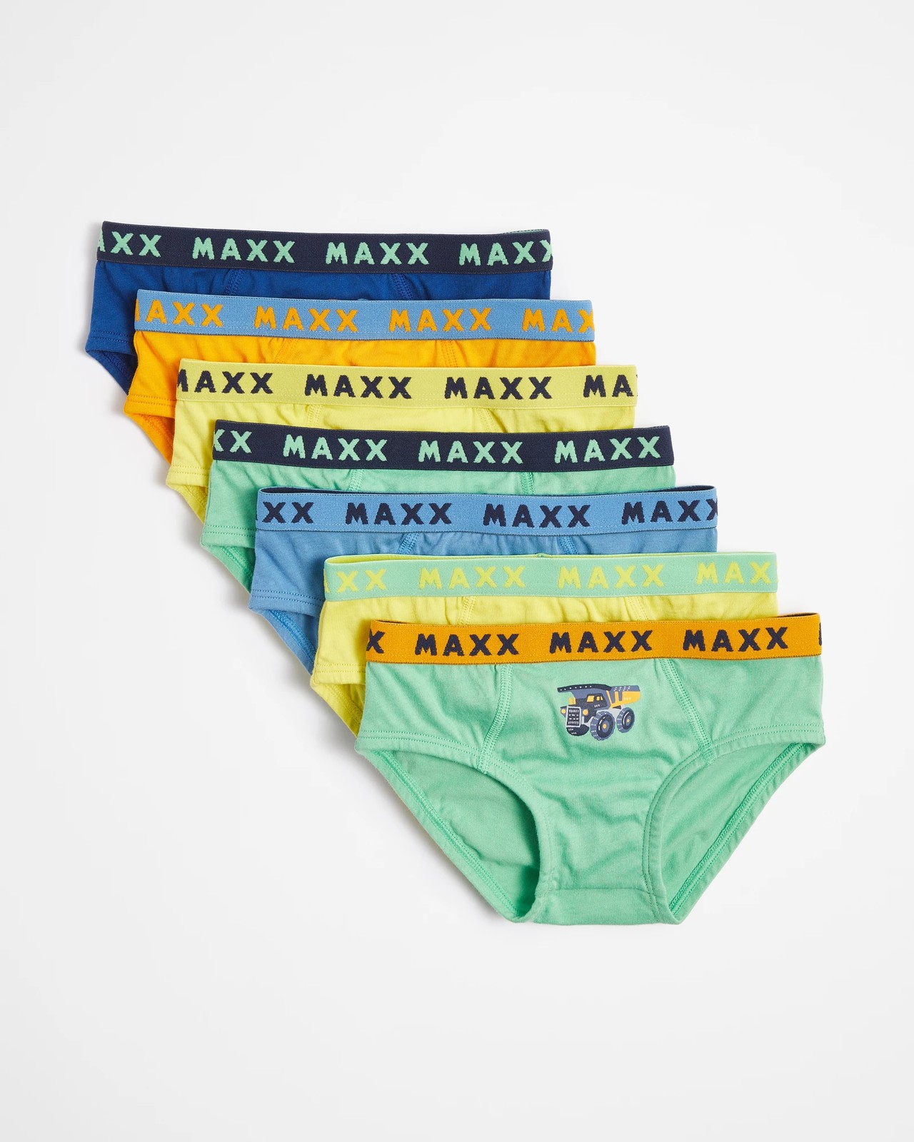 Feel comfortable and secure in our 7 Pack of Maxx Boys briefs. Made with a soft cotton-rich blend, these briefs are designed for maximum comfort and breathability. The regular fit ensures a comfortable fit, while the Maxx elastic waistband provides an extra snug feel. With seven briefs in a pack, this is perfect for everyday wear and comes in a variety of colors and digger prints. Get ready to take on the day with our Maxx Boys briefs!