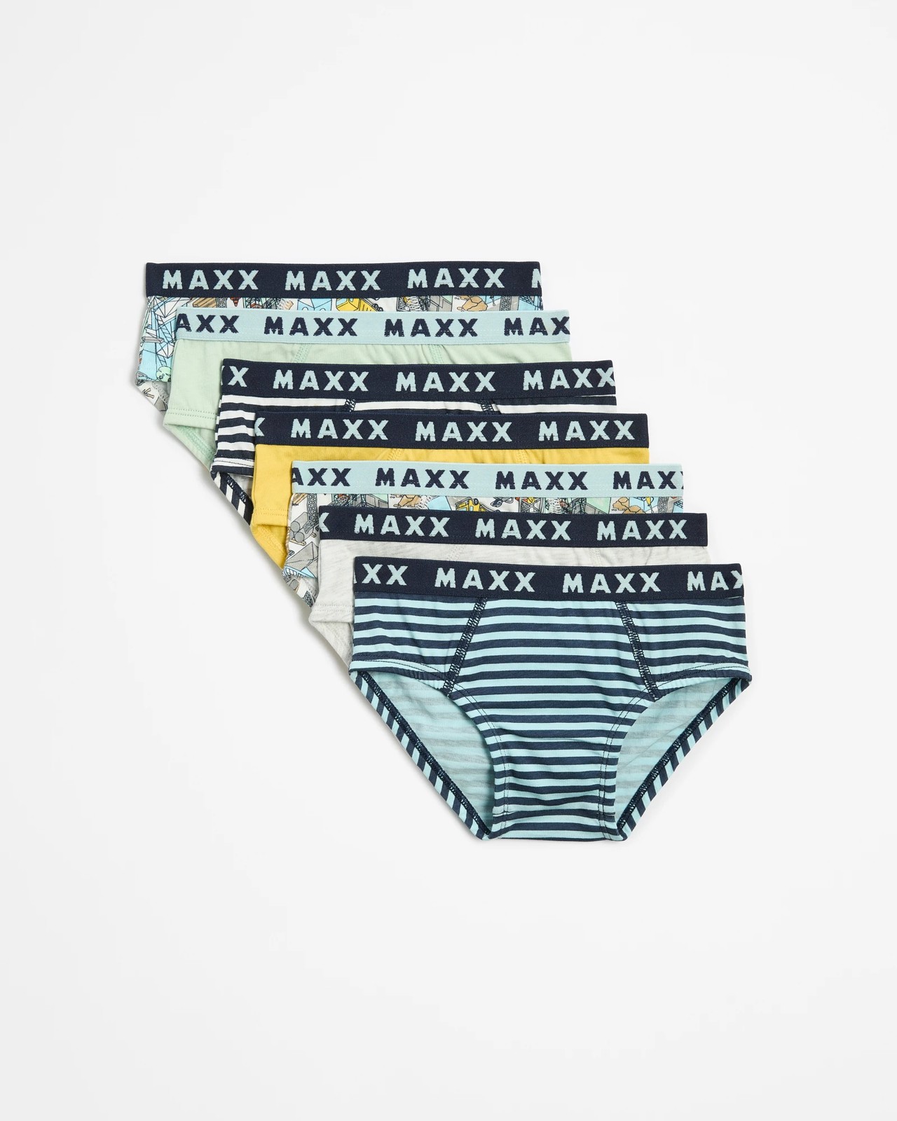 Ensure your child's comfort all day with our Boys Briefs 7 Pack. Made from soft, cotton-rich fabric, these regular fit briefs provide a perfect fit. The Maxx elastic waistband guarantees they stay in place, no matter how active your boy is. With a selection of vibrant colours and playful prints, dressing up becomes fun and effortless. Add this essential set to his wardrobe and enjoy the ideal combination of comfort and style.
