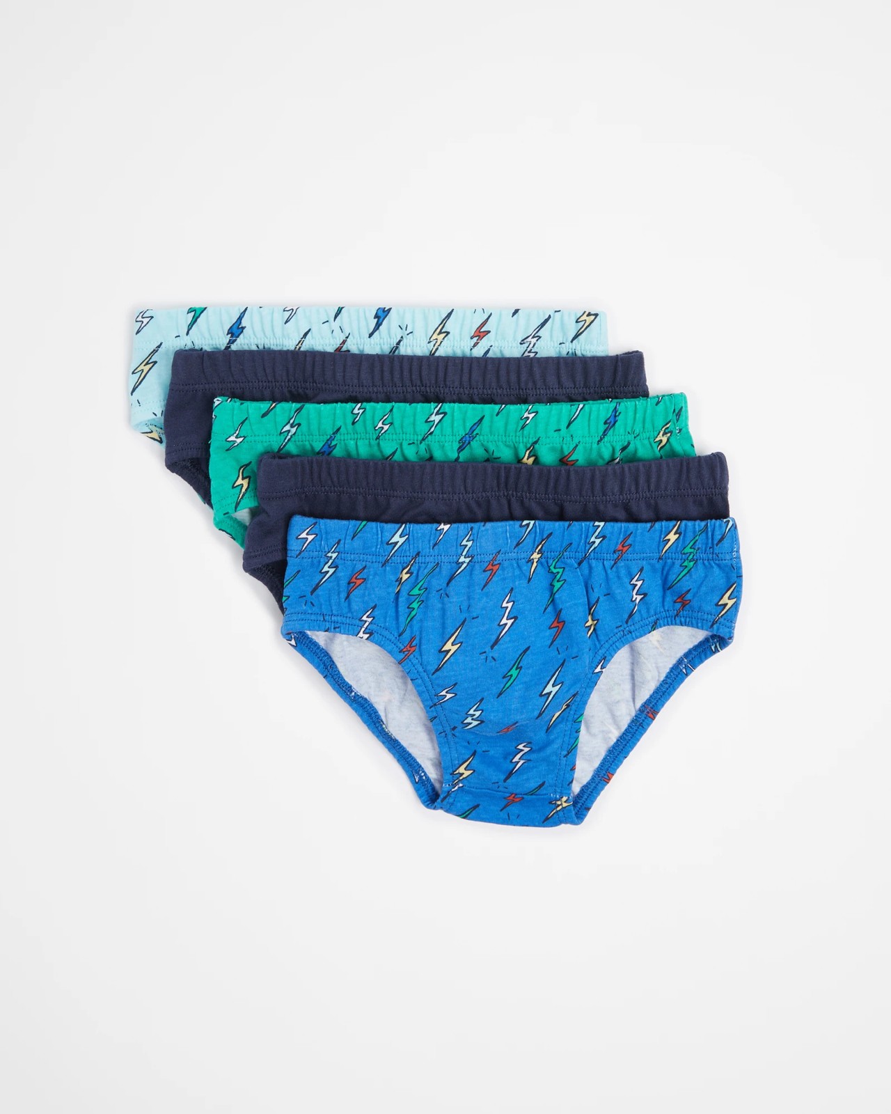 Stay comfortable and stylish with this 5 Pack Boys Essential Briefs! These briefs are made from a cotton rich blend to ensure maximum comfort all day long. The regular fit allows for the perfect balance of movement and coverage, while the elastic waistband provides a secure fit. With a variety of colours and lightening bolt prints to choose from, these briefs provide style as well as comfort. Get ready for the day with these 5 Pack Boys Essential Briefs!