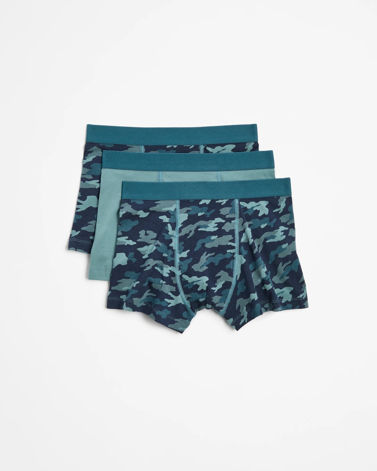 Give your little ones the perfect mix of comfort and style with our Boys Essential Trunks 3 Pack - Camo. Made from cotton with a hint of stretch, these regular fit trunks ensure all-day comfort. The range includes a variety of colours and prints, making it easy to find something everyone will like. Complete with an elastic waistband, they offer a secure fit that adapts to their movements. This practical 3-pack ensures you're always prepared for any adventure. Grab yours now and make dressing effortless and fun.