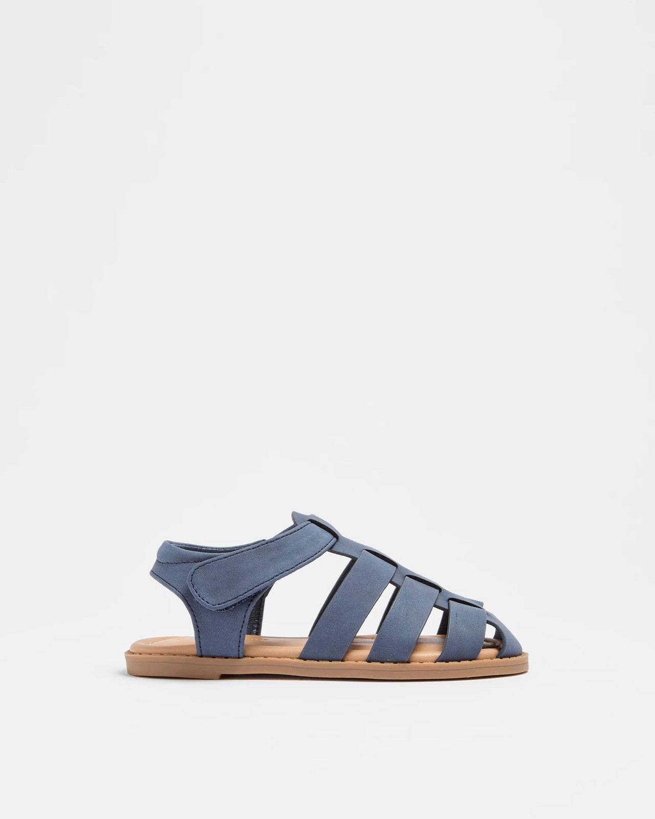 Let your child explore in style and comfort with our Boys Junior Fisherman Sandal. Perfect for active little feet, these sandals feature a synthetic upper and a closed round toe for added protection. The gladiator cut-out design ensures airflow, while the self-fastening ankle strap makes them easy to wear. The padded footbed offers extra cushioning, and the open back with a heel strap provides a secure fit. Get ready for adventure by grabbing a pair for your little one today!