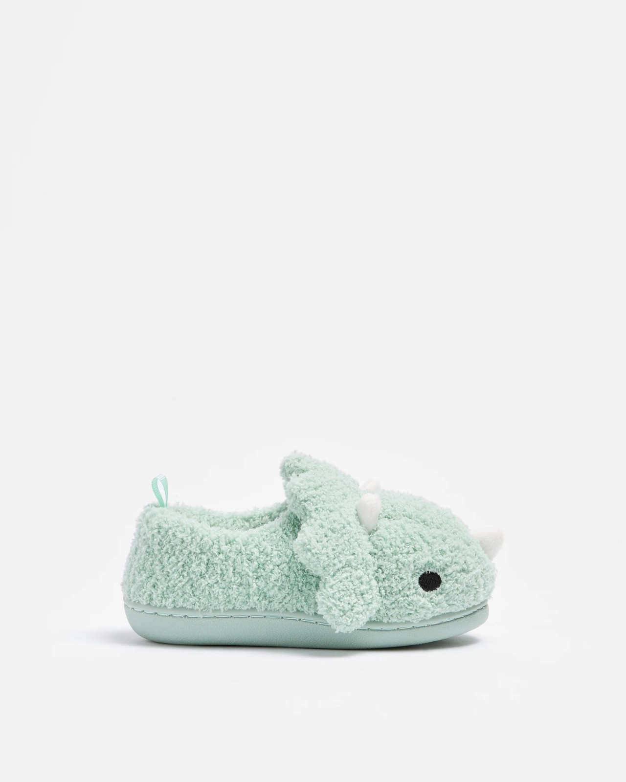 Transform your child's morning routine with the Boys Junior Novelty Dinosaur Slipper Boot - Lachy. These adorable slippers feature a captivating green dinosaur design, sure to ignite their imagination and bring comfort to their feet. With a snug synthetic fleece upper and padded footbed, your little one will experience cosy warmth all day. Easy to slip on thanks to the back pull tab, these slippers also ensure safety with their flexible synthetic sole. Embrace fun, comfort, and a touch of prehistoric adventure – treat your little one to these charming slippers today!