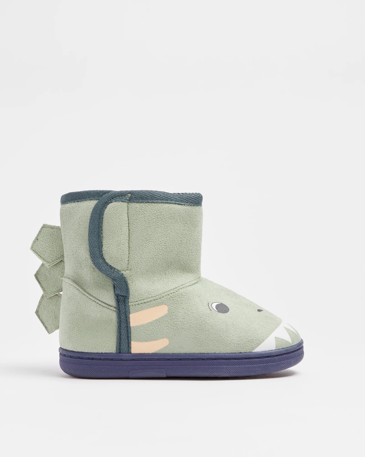 Step into comfort and fun with our Boys Junior Novelty Slipper Boot. Featuring a playful novelty design upper, cosy faux fur lining, and a comfortable padded footbed, these slipper boots are perfect for keeping little feet warm on chilly evenings. The closed round toe and self-fastening closing to the side provide a secure fit, while the flexible synthetic sole ensures easy movement. Treat your little one to these adorable slipper boots and make every step a delight!