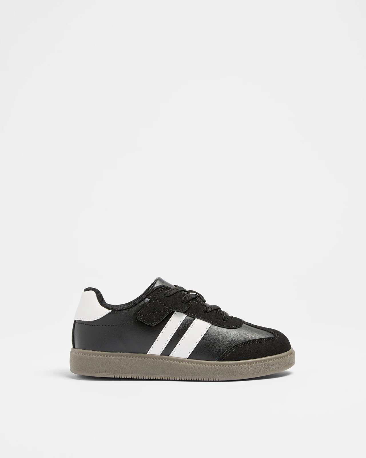 Step into style with the Boys Junior Canterbury Retro Sneaker. Designed with a modern twist on a classic look, these sneakers feature a synthetic upper and a comfortable padded collar. Easy to wear, thanks to the elastic lacing and self-fastening strap, they'll keep your young one looking sharp all day long. The closed round toe and hard-wearing synthetic sole ensure both comfort and lasting wear. Perfect for school, weekends, and everything in between, these trainers are a must-have addition to any young boy's wardrobe. Don’t miss out – grab a pair today!