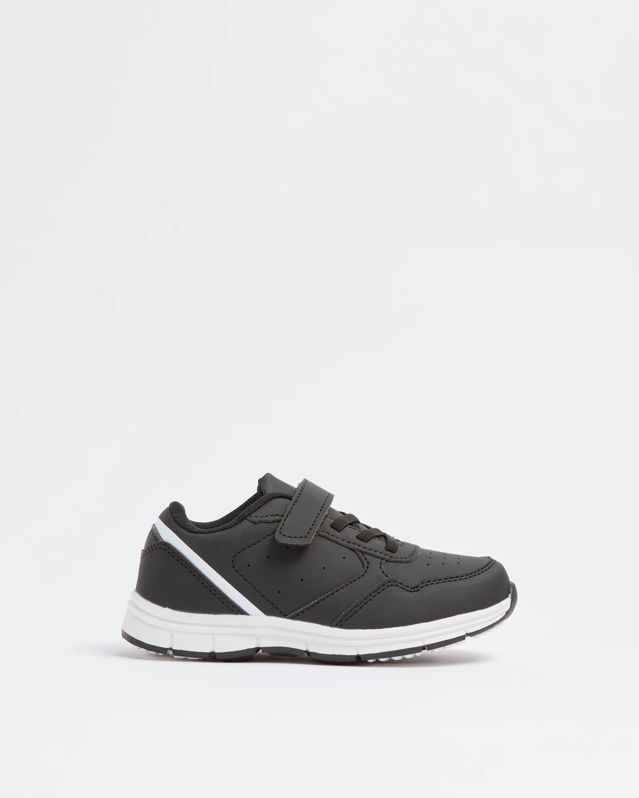 Discover the ideal combination of style and comfort with our Boys Junior Sneakers. These sleek black trainers feature a leather-look synthetic upper that is both stylish and enduring. The closed round toe with perforations ensures airflow, keeping little feet cool all day. Easy to put on, the elastic lacing and self-fastening upper strap provide a secure fit every time. With a padded collar and footbed, these sneakers offer unwavering support and comfort during any activity. The flexible synthetic sole makes them perfect for play, school, or any adventure. Treat your youngster to a pair today and let them step out with confidence!