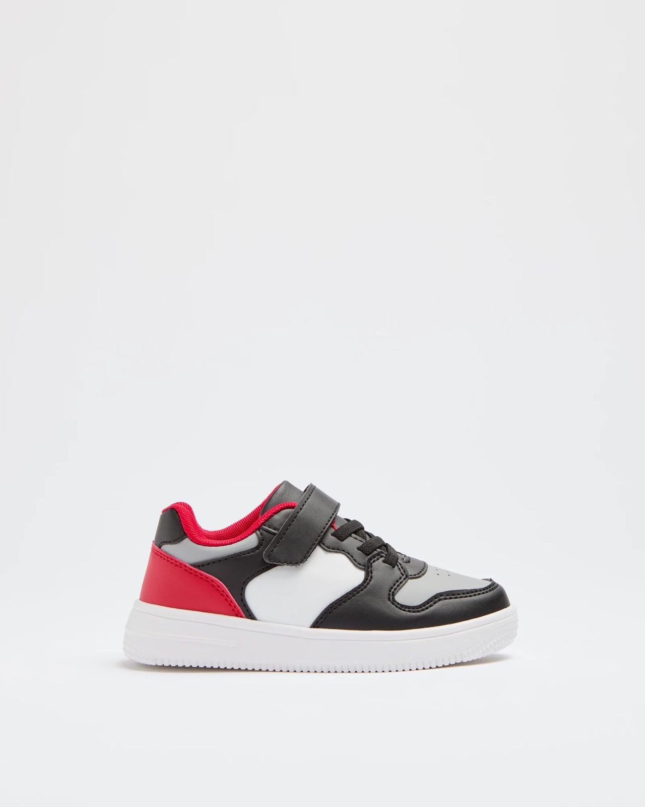 Boys junior sneakers|Synthetic upper|Closed round toe|3 hole eyelet with elastic lace|Self-fastening strap to ankle|Padded collar|Padded footbed|Synthetic sole