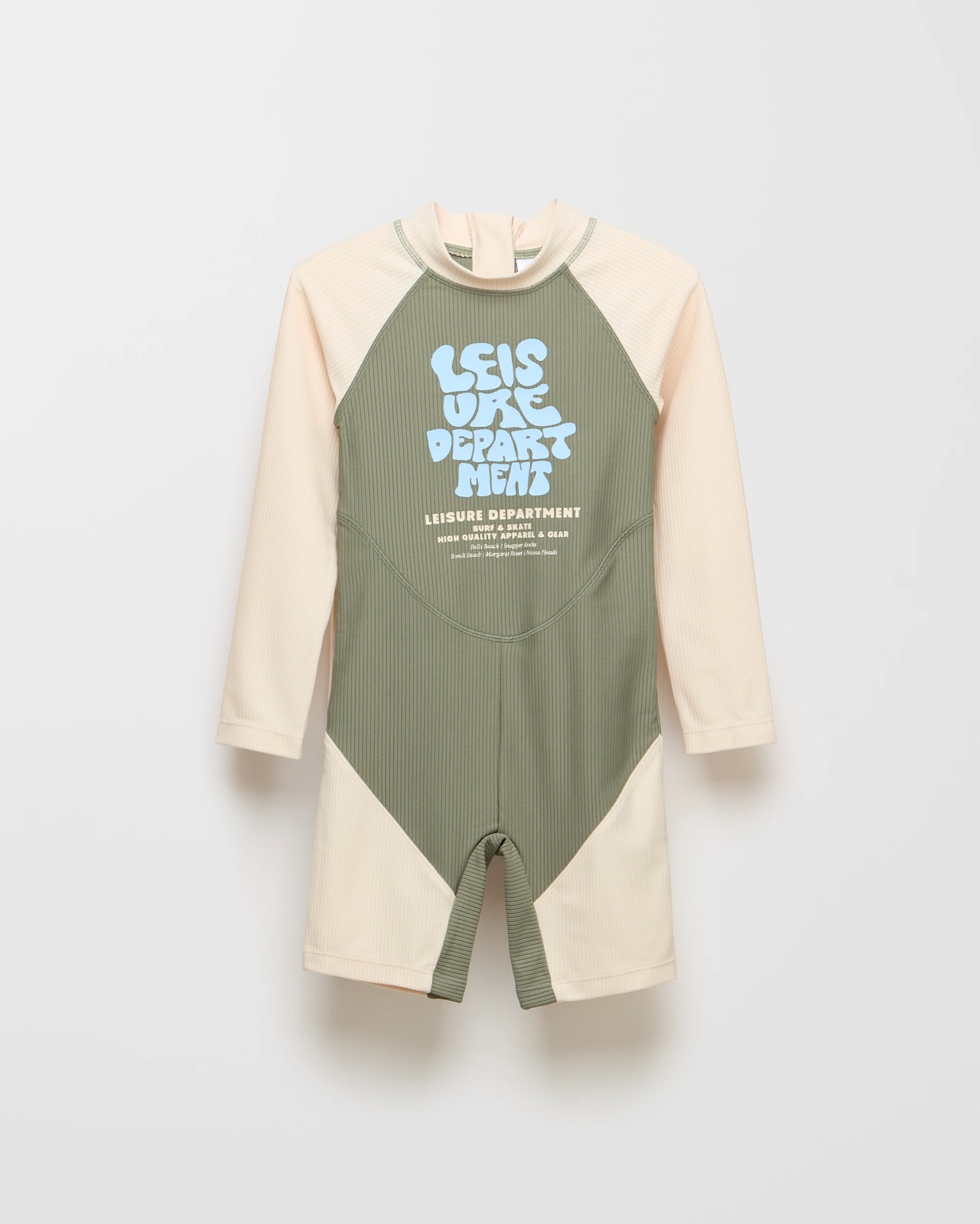 Boys Long Sleeve Ribbed Swim Onesuit - Khaki/Neutral