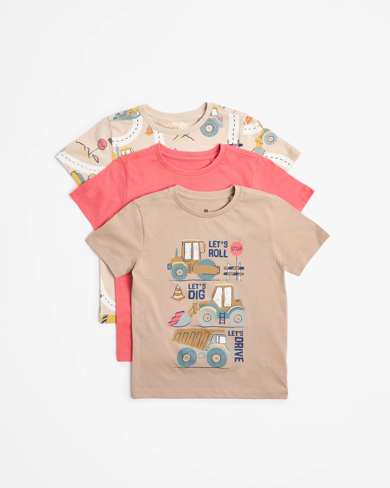 Explore our Boys Print T-shirts in a convenient pack of three! Crafted from soft cotton, these t-shirts offer a comfortable and regular fit. The crew neck and short sleeves provide a classic look, while the variety of colours and prints add fun and style. From playing outside to casual outings, these t-shirts are perfect for everyday wear. Upgrade your little one's wardrobe with these versatile and trendy pieces. Don't miss out on the chance to add some flair to his outfits!