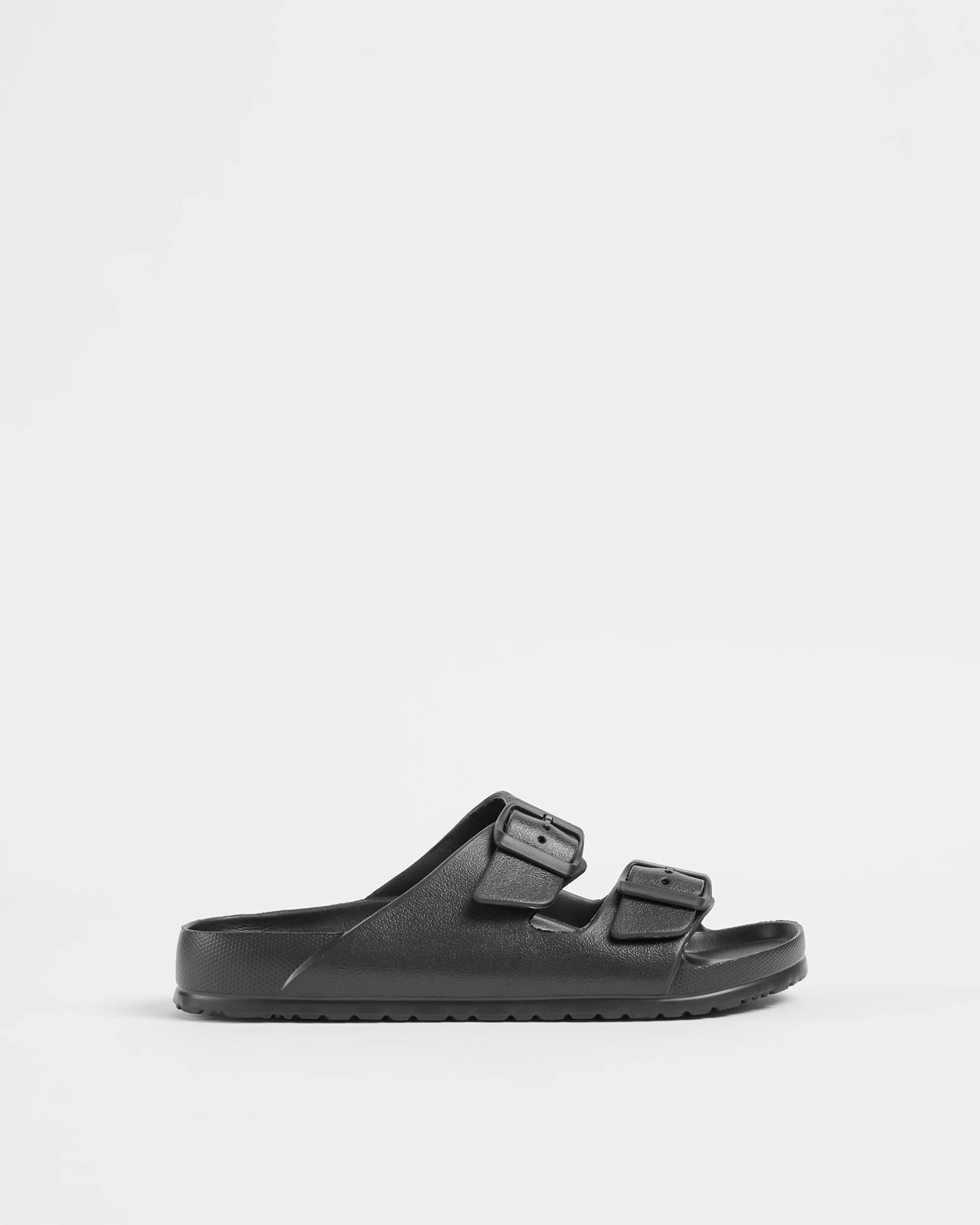 Experience blissful comfort with these Boys Senior Double Strap EVA Slides, designed to bring a smile to every step. Their fresh black look pairs beautifully with any outfit, while the adjustable double straps ensure a personalised fit every time. The moulded EVA footbed provides gentle support, making them perfect for afternoons in the park or unwinding at home. An open round toe and slip-on feature allow for quick changes and all-day ease. The synthetic sole offers steady footing, helping you move with confidence. Treat your feet to this delightful combination of ease and style—why not try a pair today?