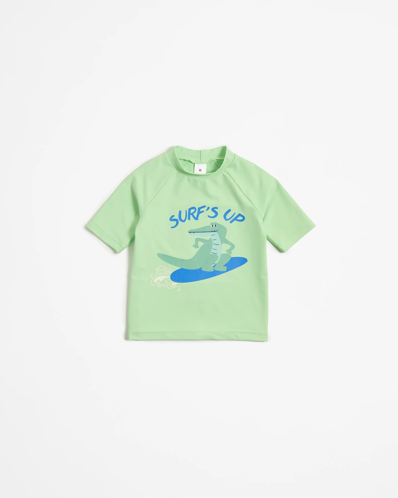 Designed for energetic boys who love to splash in the waves, the Boys Short Sleeve Swim Rash Vest is a must-have for any young water enthusiast. Its vibrant colour and stand collar provide excellent UPF50+ sun protection for long days in the sun. Crafted using recycled materials, the vest is both stylish and practical, with short contrasting colour raglan sleeves enabling a full range of movement in the water. Featuring a small print to the chest and a straight hem, comfort and style seamlessly combine in one fantastic garment. Upgrade your child's swim outfit today!
