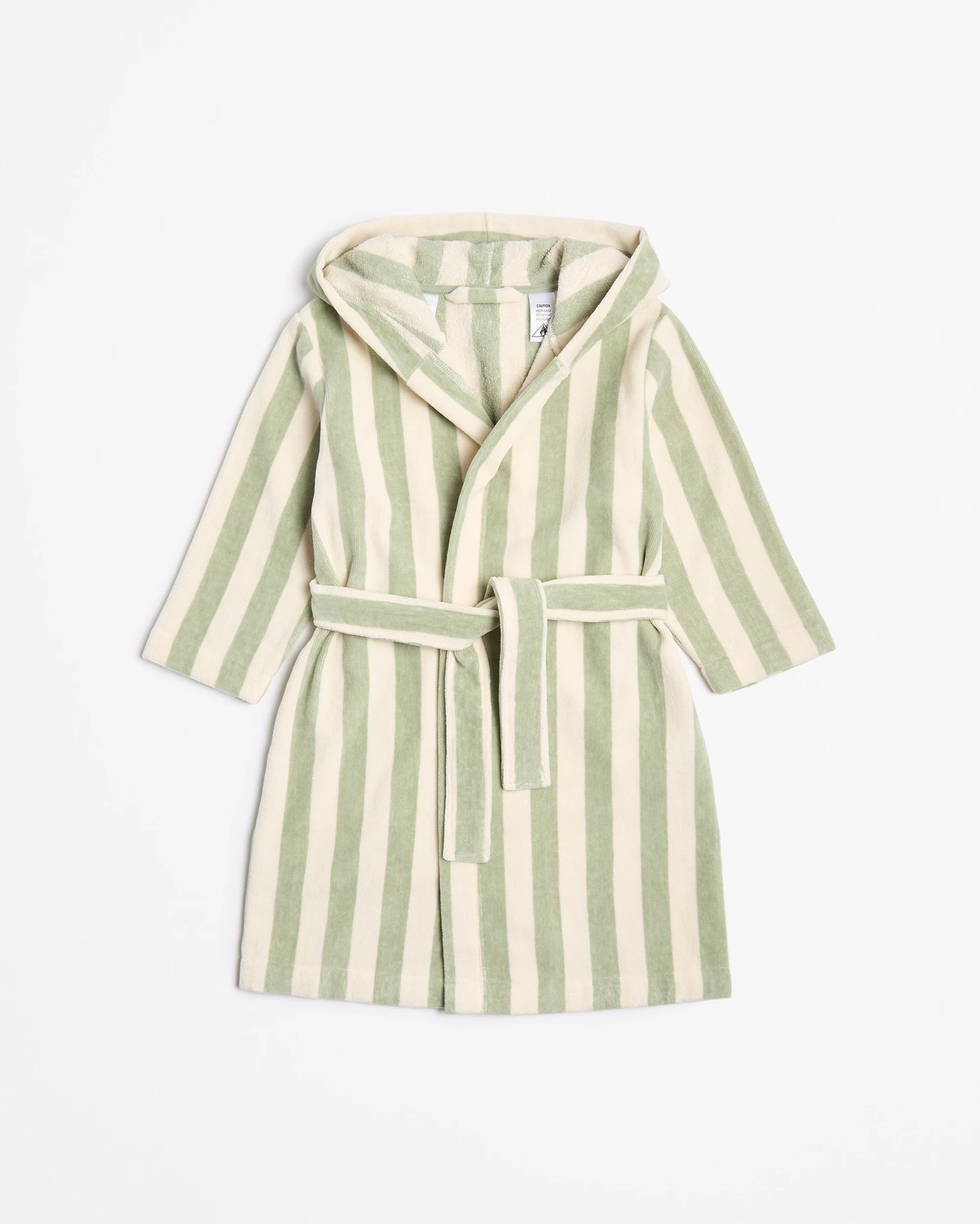 Boys Towelling Hooded Dressing Gown - Green Stripe