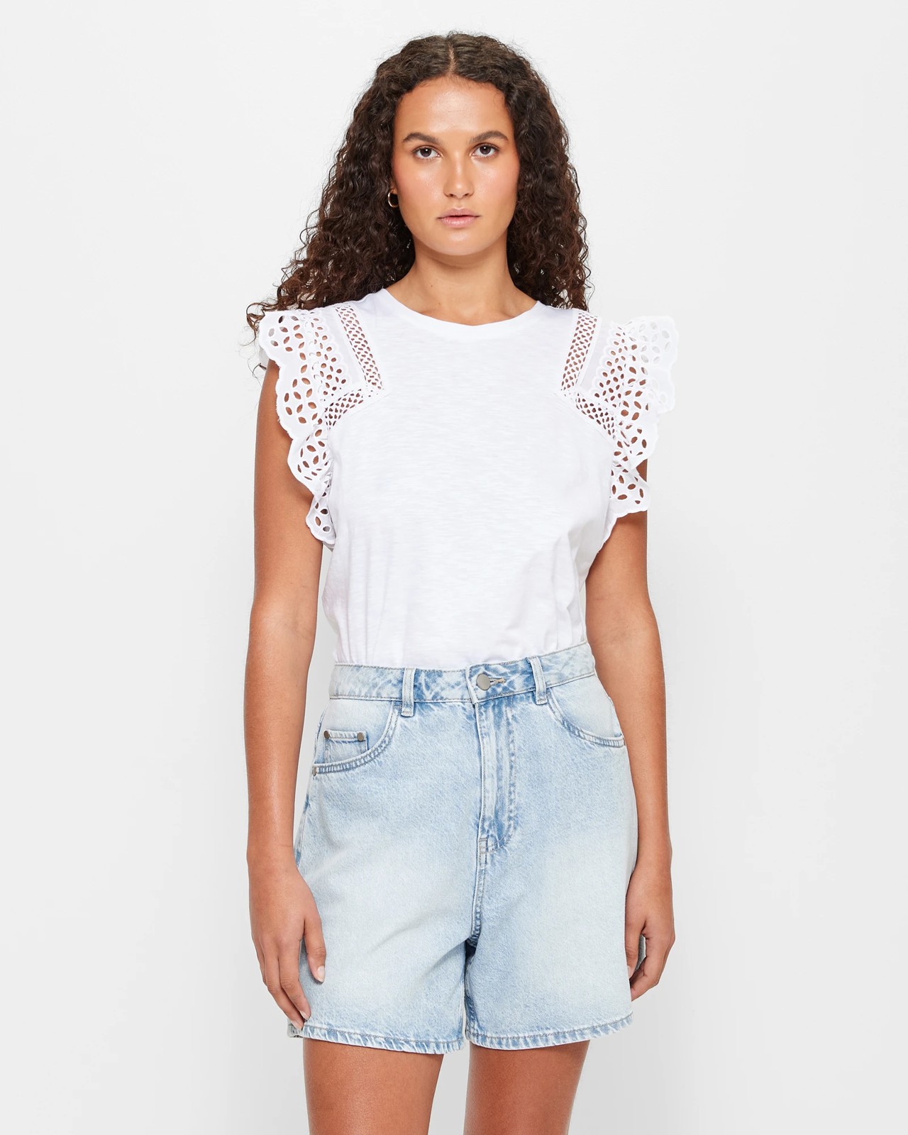 For a great everyday tank for the warmer weather that can be easily dressed up or down, the broderie frill sleeve top is a must have for your summer wardrobe. Made from a breathable cotton material, it is breathable for everyday wear and comes in multiple colours (sold separately). It has a sleeveless design with a large broderie frill around the arm holes and side seam splits for a flowy movement.