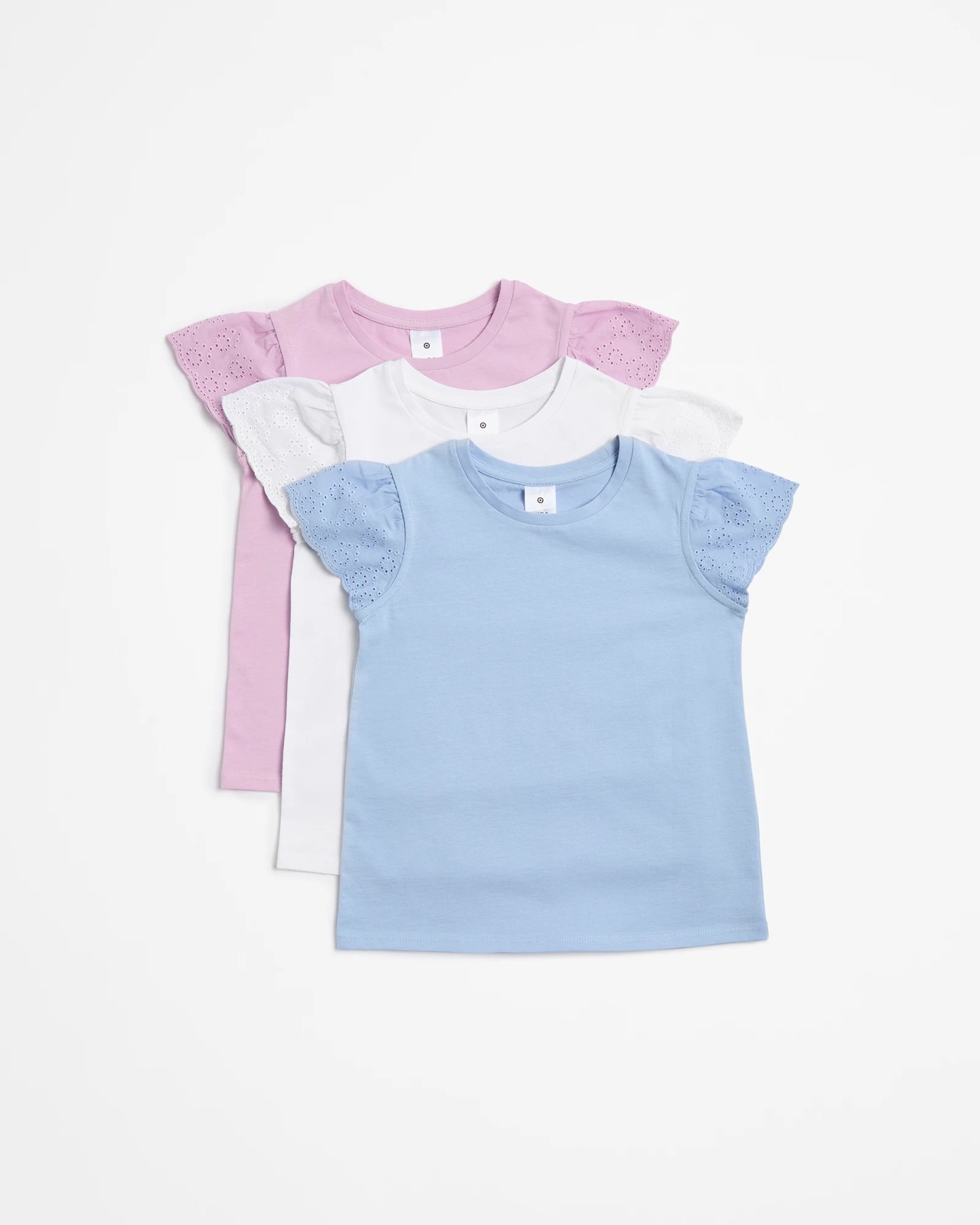 Indulge your little one in the charm of our Broderie Frill T-shirt pack. Perfect for adding a touch of elegance to everyday outfits, these t-shirts feature delicate broderie frill short sleeves and a comfortable crew neck design. Crafted from soft cotton, they offer a regular fit and a stylish straight hem. Make them feel special in these chic and versatile t-shirts that are sure to become instant favourites.