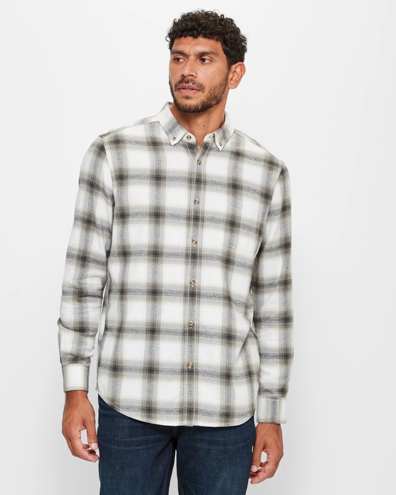 Experience the perfect blend of style and comfort with our Brushed Twill Check Shirt. Made from cotton with a soft brushed texture, this shirt offers a snug fit that is ideal for any casual setting. The classic khaki check design paired with a round collared neckline and button-through front adds a touch of British charm to your outfit. Enjoy the practicality with a handy open chest pocket and a stylish curved hemline providing you with elegant mobility. Whether worn for a relaxed weekend look or a casual meet-up, this shirt ensures you stand out with understated sophistication. Get yours now and redefine your casual wardrobe.