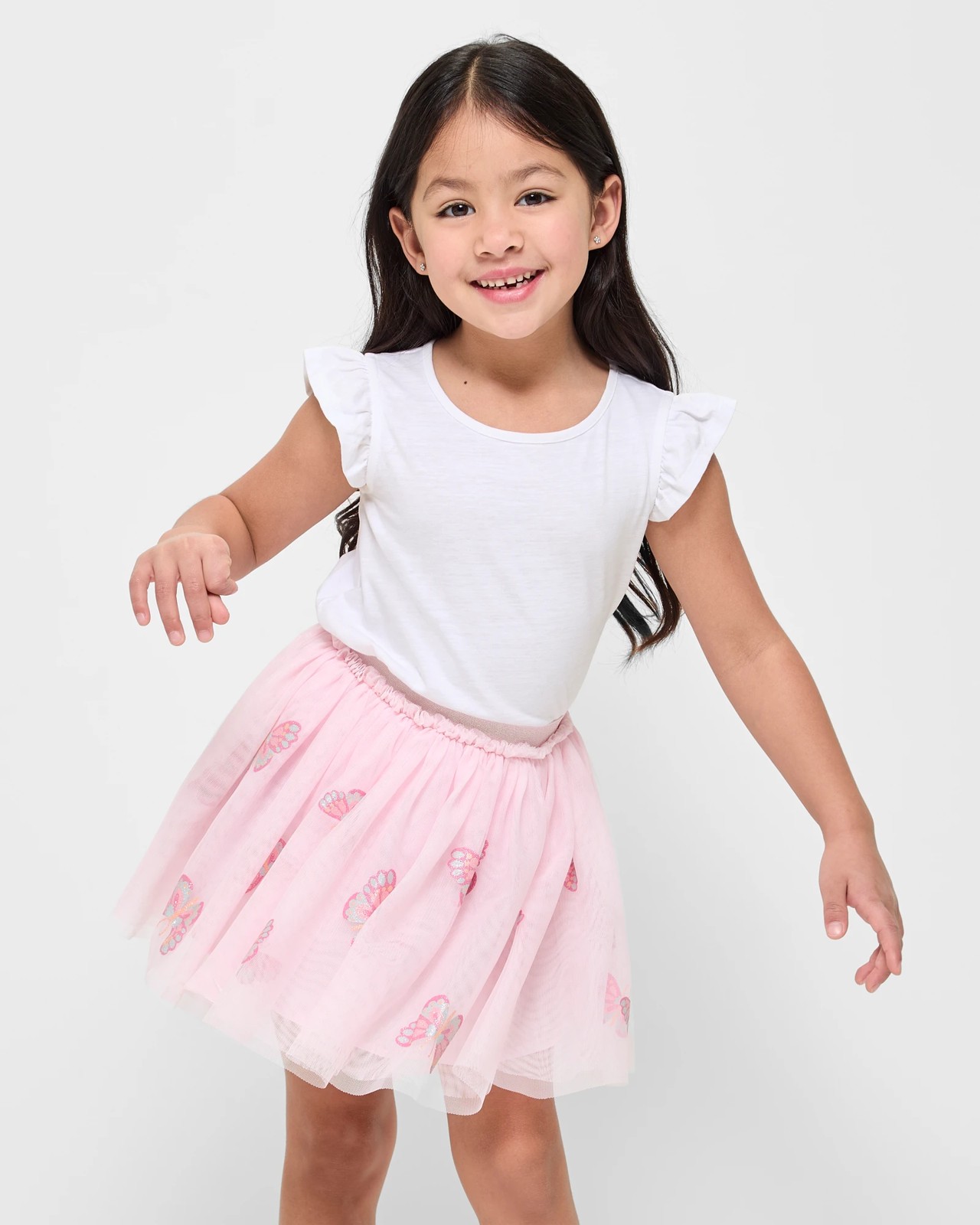 Transform your little one's wardrobe with our enchanting Butterfly Glitter Tulle Skirt. Perfect for any occasion, this lovely skirt features a delicate butterfly glitter design that will make her feel like she's living in a fairy tale. The soft tulle overlay adds a touch of magic, while the glitter elastic waistband ensures a comfortable fit. Fully lined for extra comfort, it's a versatile piece that pairs beautifully with her favourite tops. Treat her to this delightful skirt and let her imagination soar.