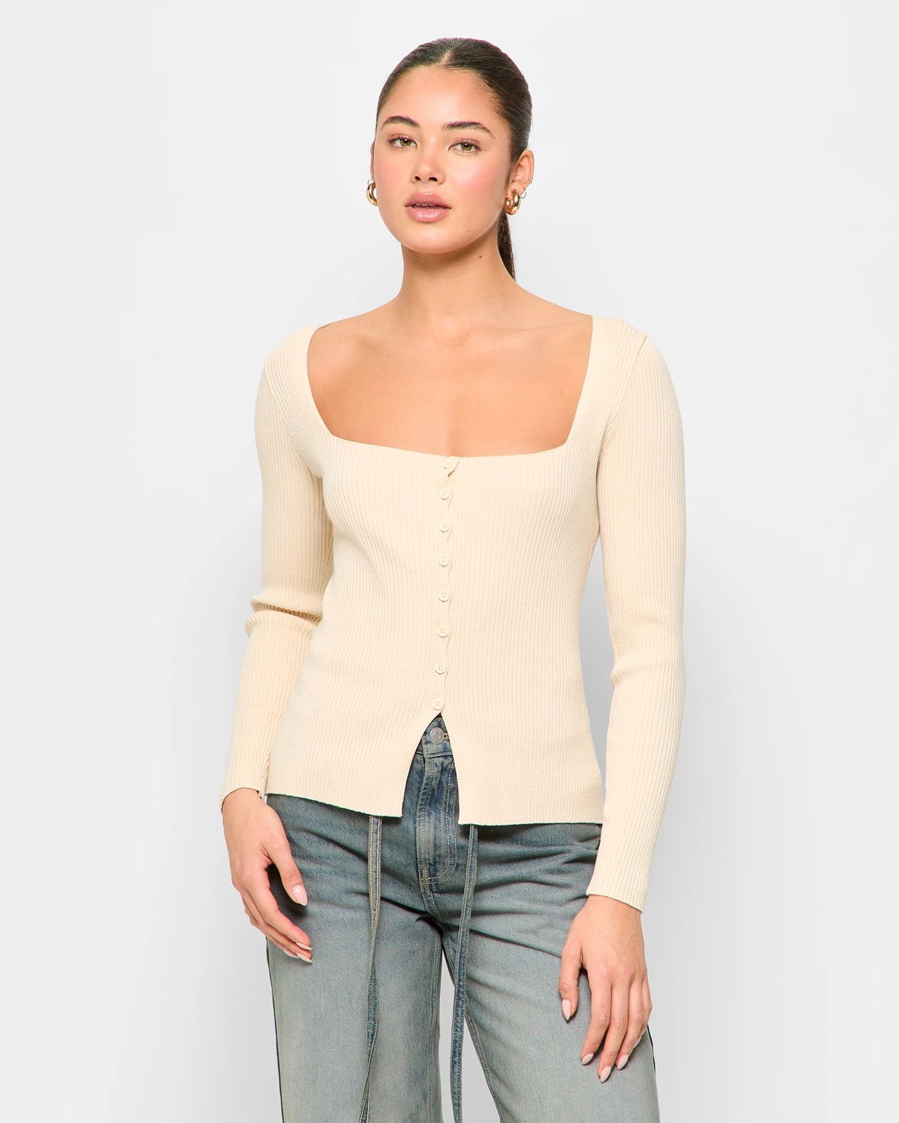 Transform your wardrobe with the Lily Loves Button Front Knit Top. This black knit top, made from a blend of viscose and nylon, guarantees both comfort and style. Designed with a square neckline and front buttons, it suits all body types with its regular fit. The long sleeves and straight hemline offer a timeless look, making it ideal for both relaxed outings and smart-casual occasions. Add this versatile and sophisticated piece to your collection today.