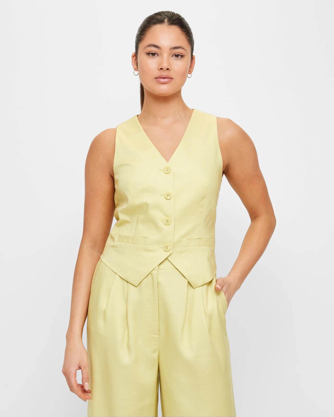 Introducing Lily Loves' stylish Button Front Waistcoat! Crafted from a blend of polyester and lyocell, this waistcoat has a classic design that is sure to make an impact. Fully lined for comfort, the waistcoat has a regular fit with a v-neckline and pointed front hem. Perfect for any occasion, it will quickly become your go-to garment. Add a touch of sophistication and style to your wardrobe with this timeless piece from Lily Loves! Pair with the matching pants and blazer to complete your look (sold separately).