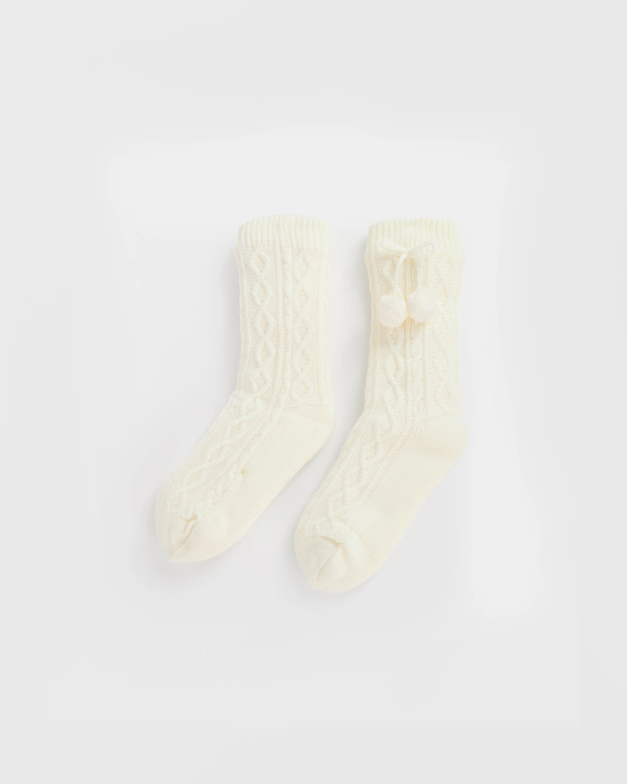 Experience pure comfort at home with the Cable Home Pom Pom Crew Socks, your new favourite cosy companions. Made with extra soft acrylic and a plush lining, these socks are designed to make every step gentle and warm. The cable knit pattern teamed with adorable pom poms and a bow tie at the cuff add a cheerful finishing touch, so your lounge look always feels fun. The ribbed welt keeps your socks in place, while the reinforced toes offer extra support as you move. Slip into these delightful crew socks whenever you want to unwind and add a little playful style to your relaxing moments. Make your evenings snug and stylish—treat yourself to a pair today.
