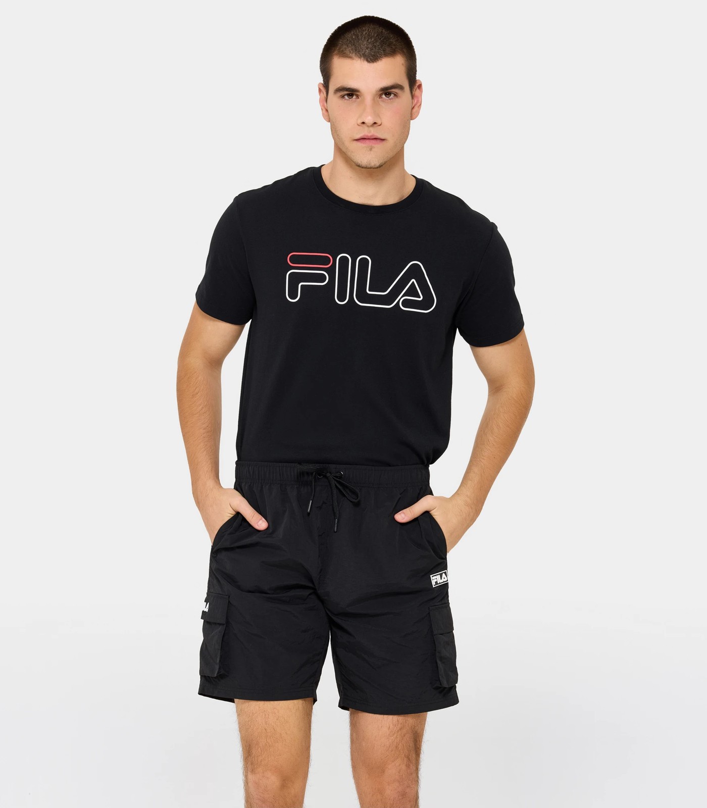 Step up your style game and stay comfortable in our mens Fila Caelem cargo shorts! Crafted from nylon, the elasticated waistband with a drawcord ensures a customisable fit, while the hip pockets and utility pockets on each leg with velcro closure provide ample storage. These shorts feature a Fila rubber badge to the left hip and Fila embroidery to the right pocket flap. Pair them with your favourite t-shirt and sneakers for a stylish and relaxed fit!
