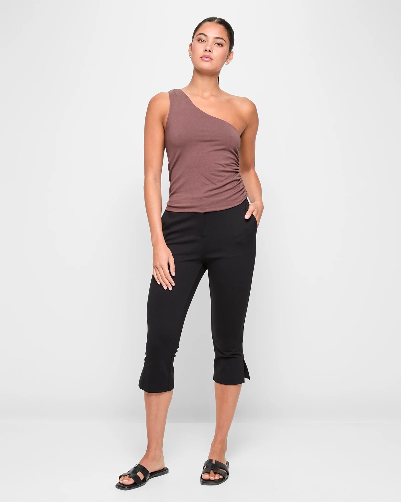 Discover the ideal combination of comfort and style with the Capri Ponte Pants by Lily Loves. Made from a viscose and nylon blend with added stretch elastane, these trousers offer a slim fit without sacrificing comfort. The timeless ponte design features a structured waistband and a convenient front clasp with a zip fly for a secure fit. With functional side pockets and a cropped leg with side seam splits, these pants add a touch of practicality to your wardrobe. Perfect for enhancing your everyday look, these trousers are a must-have for any occasion.