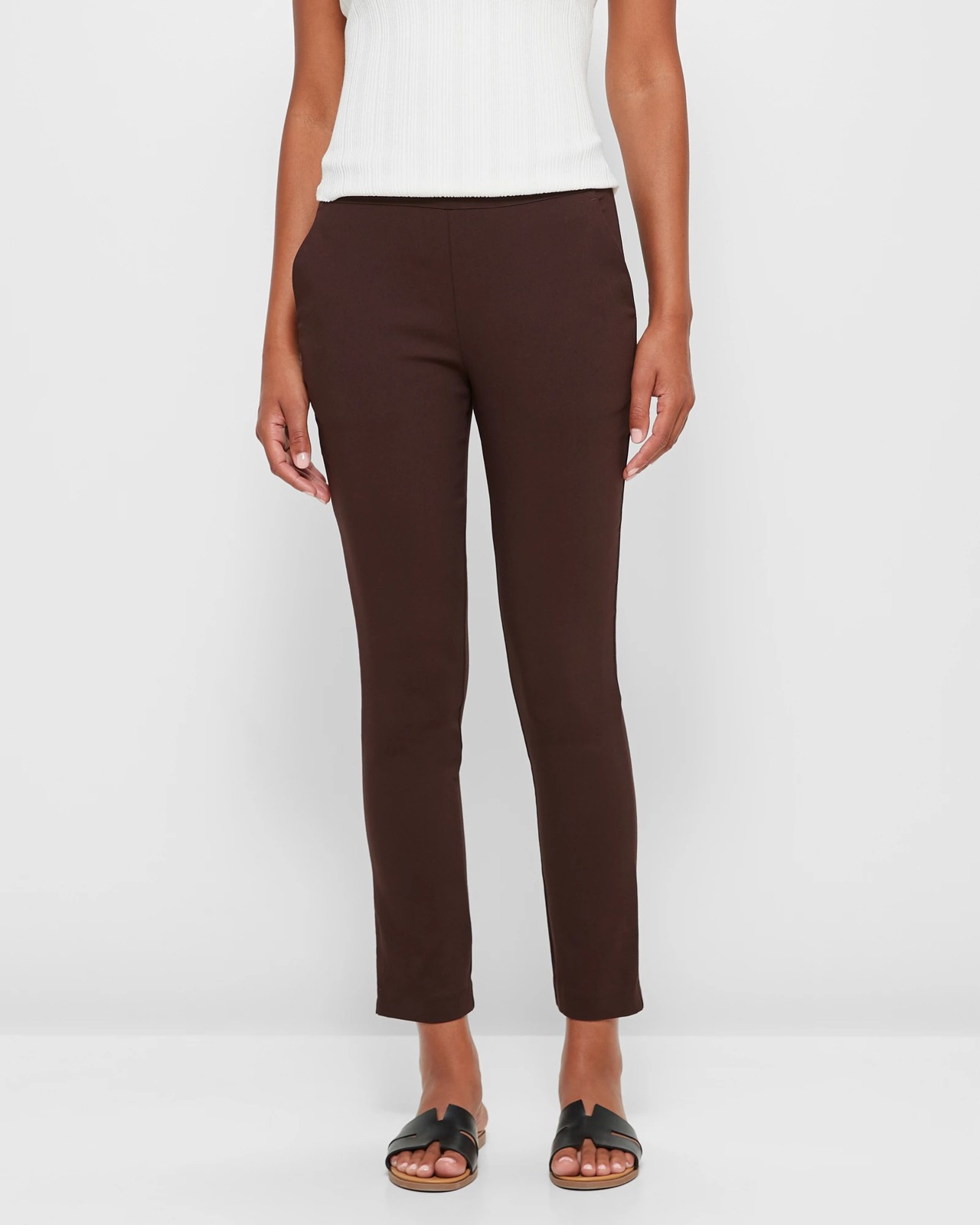 Introducing the Carrie Ankle Length Bengaline Pants by Preview! These incredible pants are made from a luxurious blend of polyester and viscose, guaranteeing ultimate comfort and a figure-flattering fit. The stretchy fabric allows for easy movement, while the skinny leg silhouette creates a sleek and stylish look. With a mid-rise waist and a hidden flat elastic waistband, these pants provide a secure and comfortable fit all day long. Complete with front pockets and an ankle length design, they are perfect for both casual and formal occasions. Upgrade your wardrobe with these must-have pants and experience the perfect combination of style and comfort today!