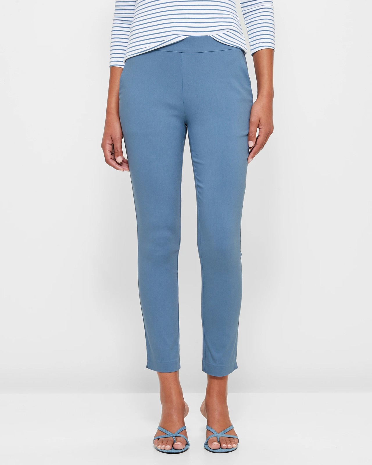 Introducing the Carrie Ankle Length Bengaline Pants by Preview! These incredible pants are made from a luxurious blend of polyester and viscose, guaranteeing ultimate comfort and a figure-flattering fit. The stretchy fabric allows for easy movement, while the skinny leg silhouette creates a sleek and stylish look. With a mid-rise waist and a hidden flat elastic waistband, these pants provide a secure and comfortable fit all day long. Complete with front pockets and an ankle length design, they are perfect for both casual and formal occasions. Upgrade your wardrobe with these must-have pants and experience the perfect combination of style and comfort today!