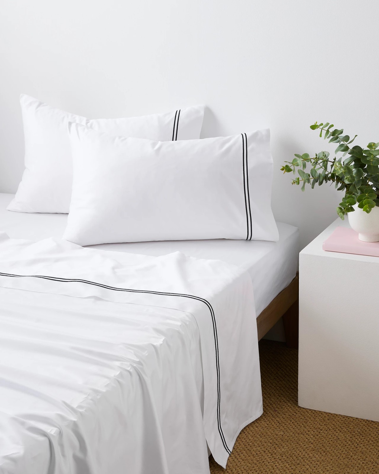 Set includes: 1 x fitted sheet, 1 x flat sheet and 2 x standard pillowcases