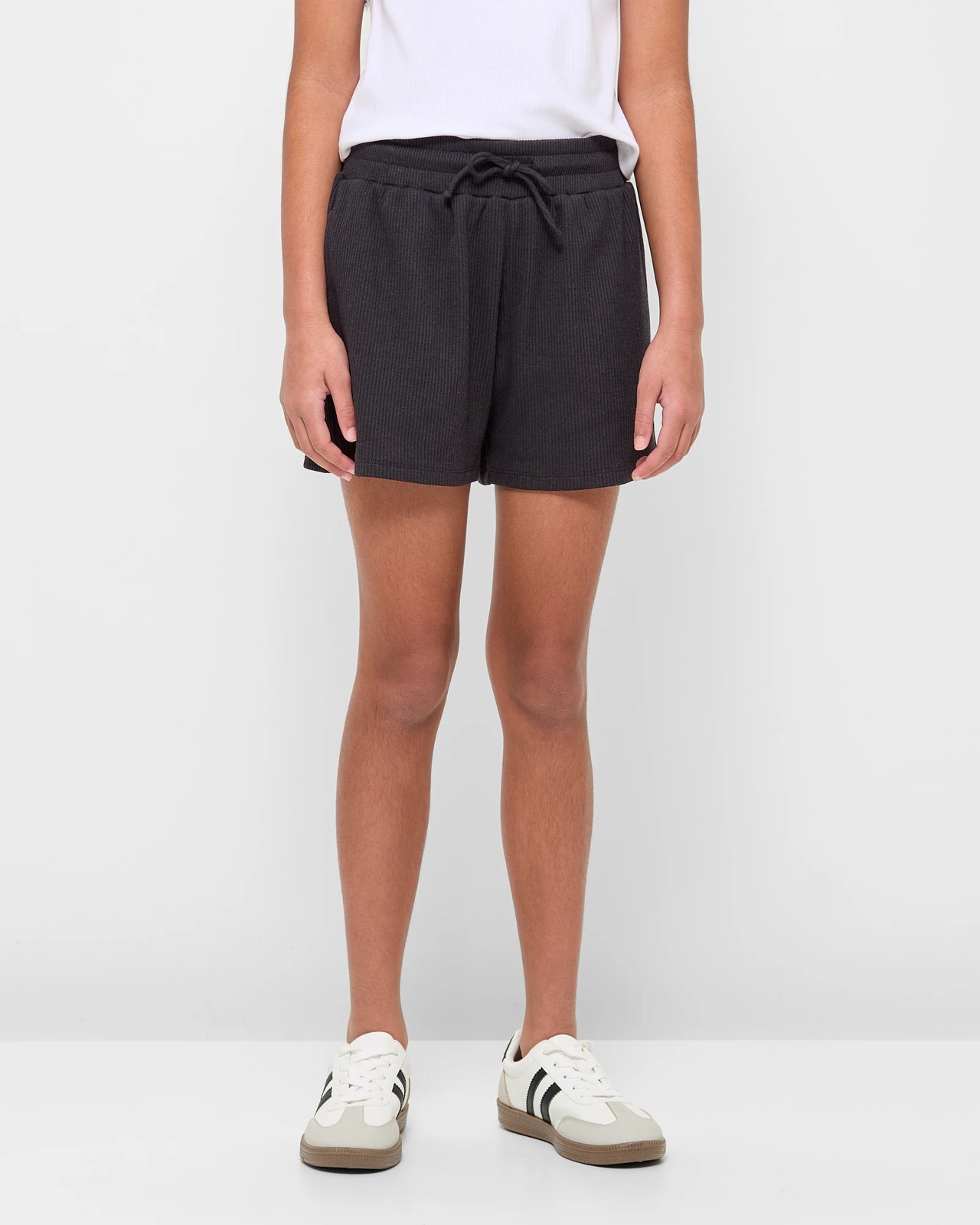 Elastic ribbed waistband with drawcord