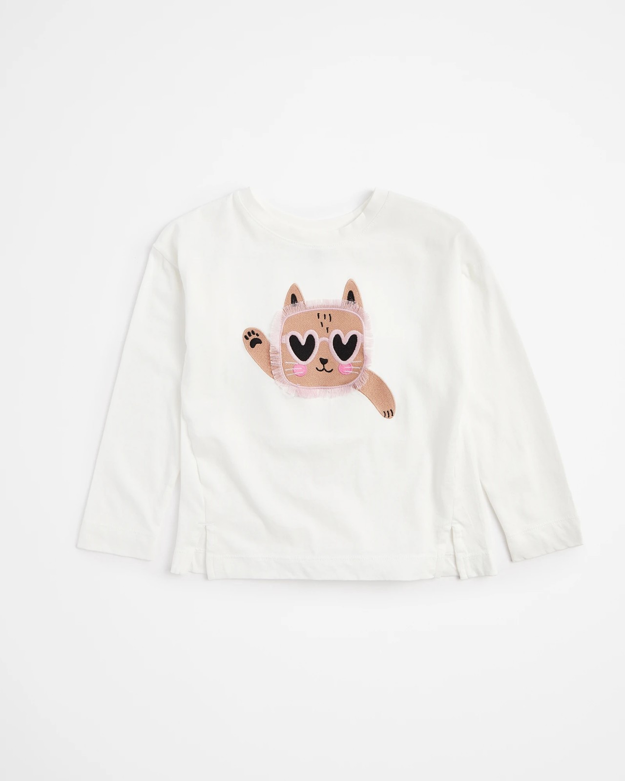 Introducing our enchanting Cat Tassel Top for girls. Made from soft and breathable cotton, this top offers a comfortable and regular fit. With its charming white colour, crew neck, and long sleeves, it's perfect for everyday wear. The standout feature is the adorable cat crochet print with tassel detailing, adding a playful touch. The straight split hem adds a trendy twist to this cute top. Whether it's a casual outing or a special occasion, your little one will look stylish and feel fabulous in this Cat Tassel Top. Get yours today and make your little one's wardrobe purr-fect!