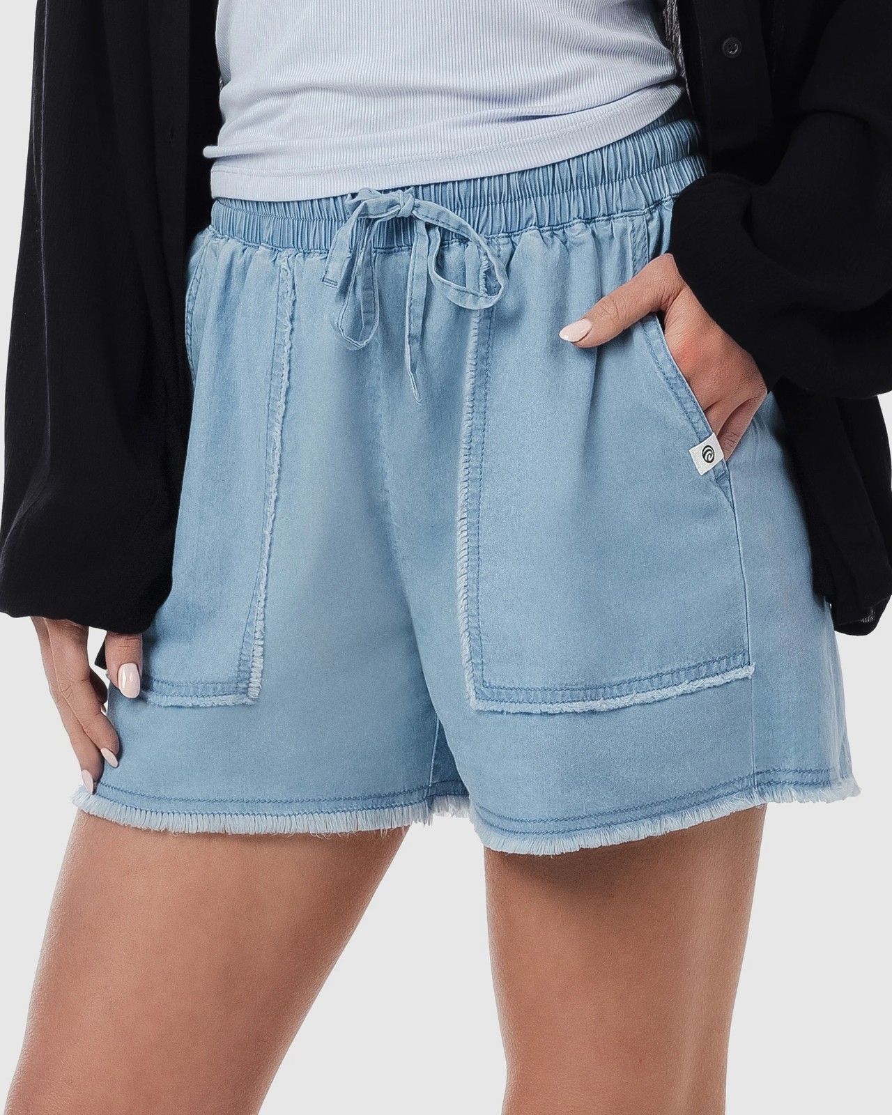 These Piping Hot shorts deliver relaxed and casual cool. For a lightweight short perfect for everyday wear these chambray cotton shorts combine comfort and style, with elasticated waist and pocket detailing.