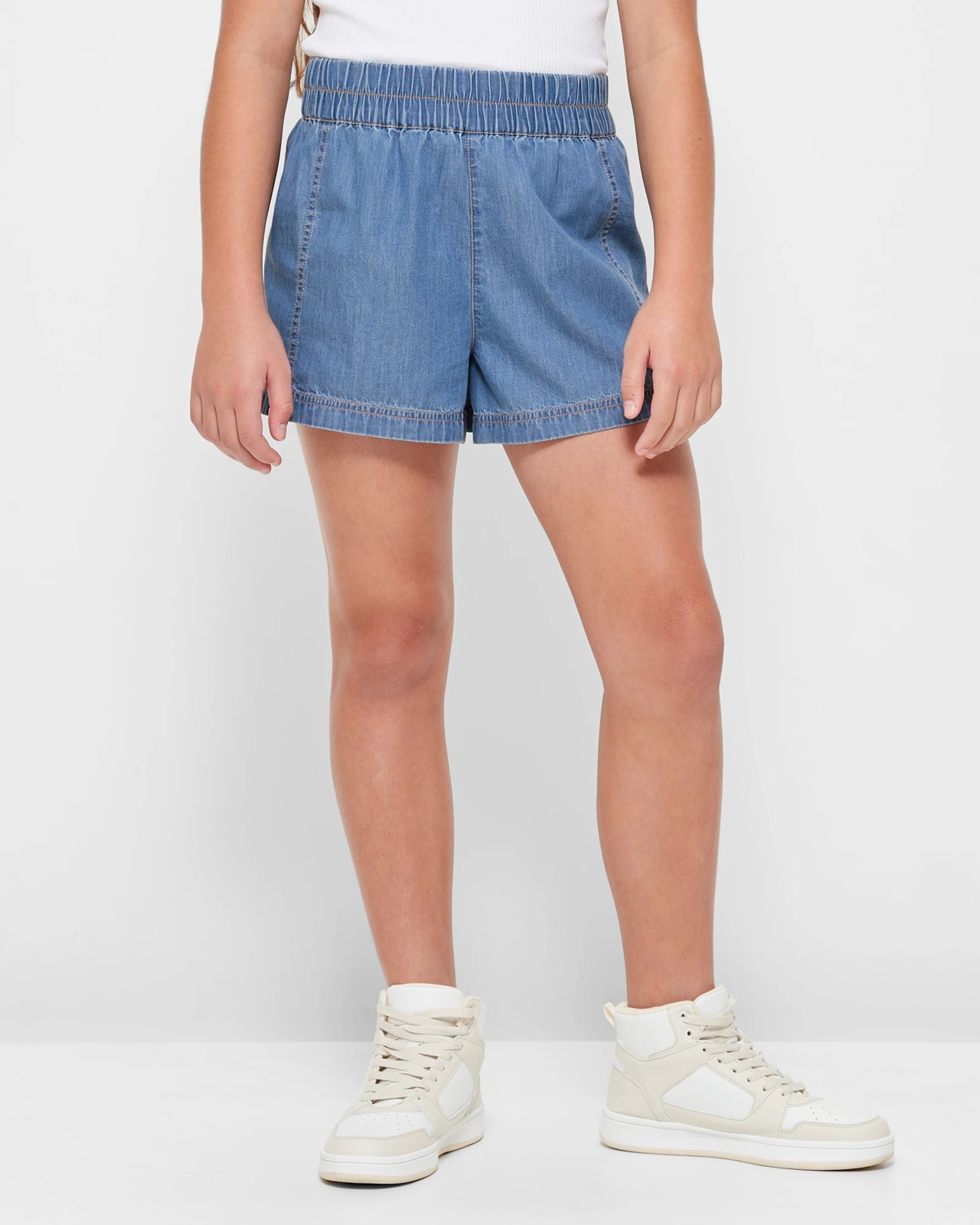 Step into comfort and style with our Chambray Shorts. These cotton chambray shorts in a beautiful blue hue are designed for a regular fit, featuring a convenient elastic waistband for easy wear. The short length adds a trendy touch to any outfit. Perfect for active little girls on the move, these shorts combine fashion and function effortlessly. Elevate their everyday wardrobe with these versatile shorts that offer both comfort and style.