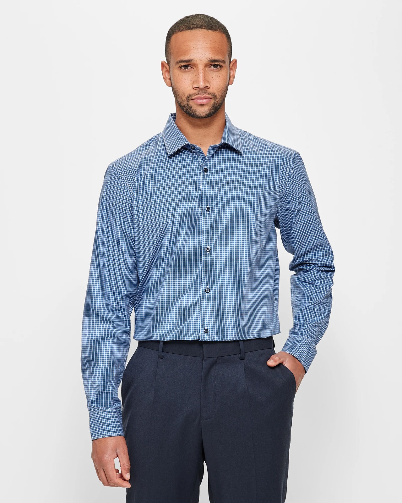 Step into style with our Check Shirt Preview for men. Made from soft cotton, it offers all-day comfort without compromising on sophistication. The classic blue check print brings a dash to your wardrobe, making it versatile for both business and casual settings. Featuring a collared neckline and a button-through front, this shirt ensures a polished look. Long sleeves with buttoned cuffs and a curved hemline add a refined touch. Available in a regular fit, it's designed to offer ease and elegance. Make it yours today and enhance your everyday style!