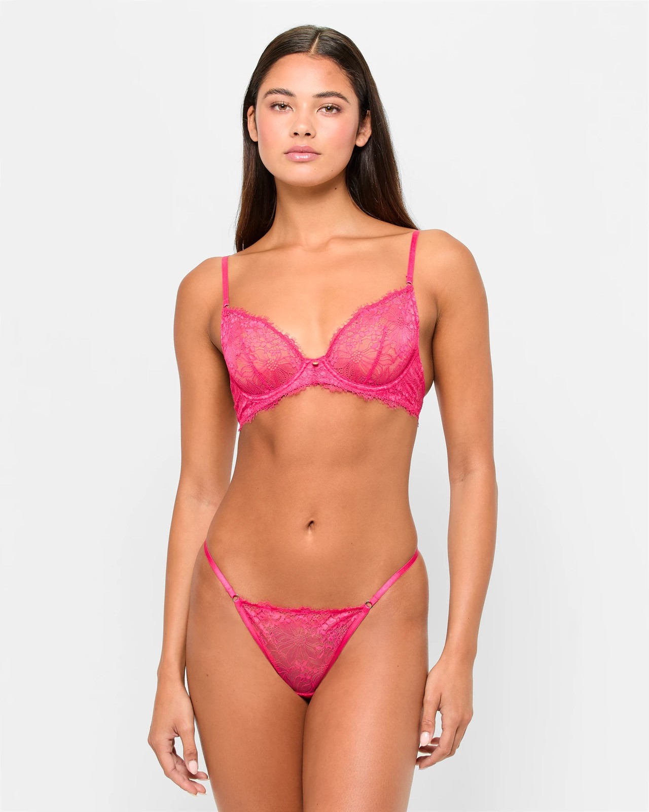 Discover the beauty of the Chella Lace Plunge Underwire Bra by Lily Loves. Made from a fine nylon and polyester blend with elastane for added comfort, this bra features an intricate lace design throughout. With a classic plunge neckline, adjustable thin shoulder straps, and soft sheer cups, it provides both style and support. The gold medallion charm and raw edging add unique touches. Enjoy a perfect fit and feel confident every day with this essential piece in your lingerie wardrobe.