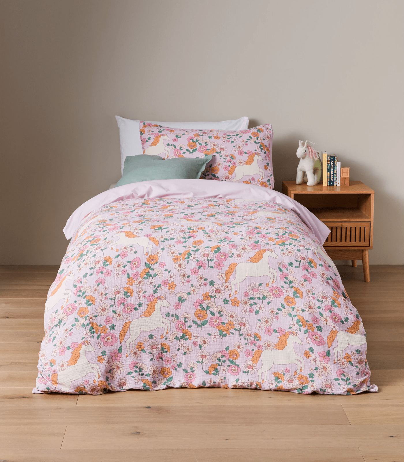 Chloe unicorn kids textured quilt cover set