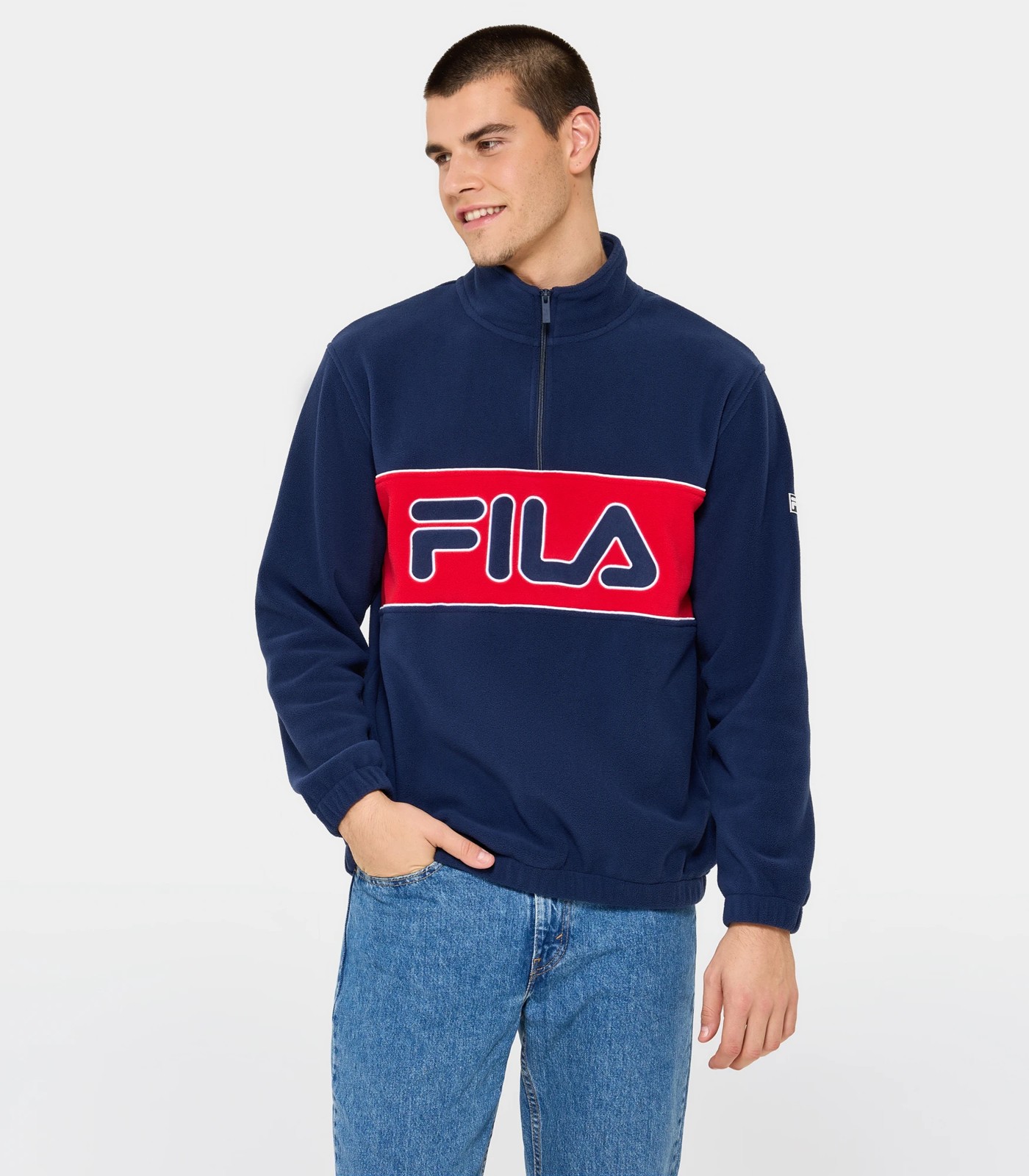 Stay warm in this mens Christopher quarter zip from Fila. This quarter zip is made from a polyester polar fleece for next-level comfort when you layer up. It features elasticated cuffs, a Fila applique embroidery to the centre front chest and Fila rubber badge to the left arm fold, with contrast splicing and zip features to centre front.